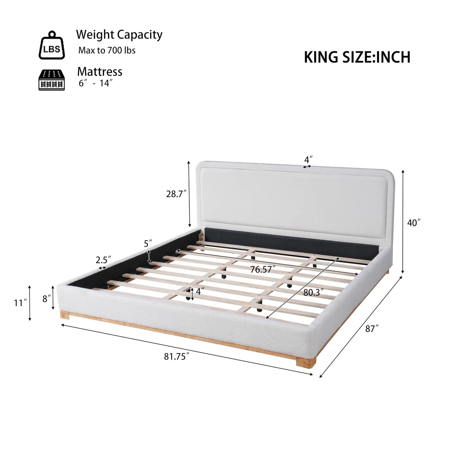 Merax King Size Boucle Bed Frame with Curved Headboard, White Upholstered Cloud Platform Bed, Solid Wood Base, Soft Rounded Corners Design, No Box Spring Needed, Easy Assembly, White
