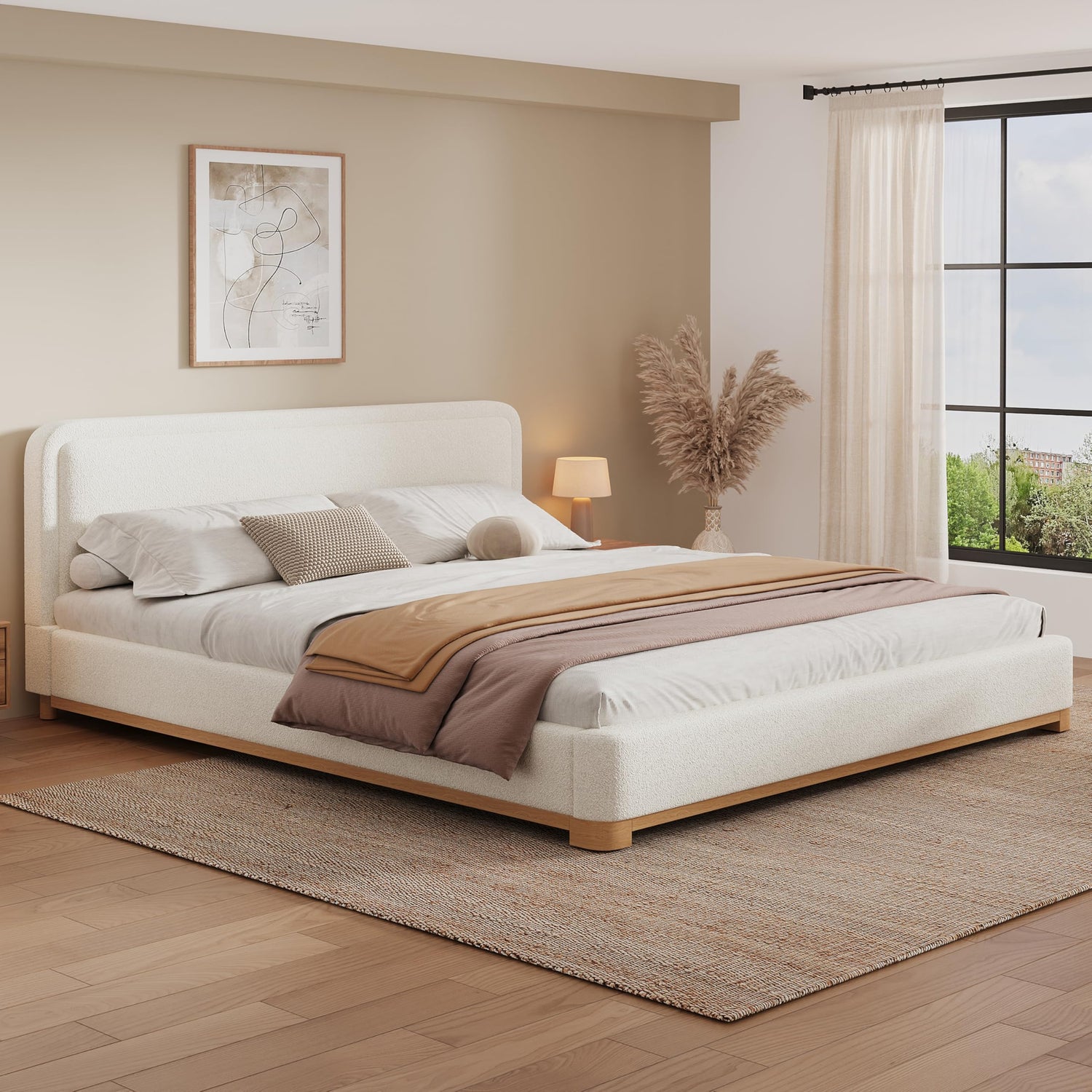 • Modern Cloud-Like Design: Elevate your bedroom with this contemporary king bed frame, featuring a fully upholstered silhouette and a softly curved headboard. The elegant boucle bed frame design adds a touch of sophisticated texture, creating a cozy cloud bed frame aesthetic for any modern home