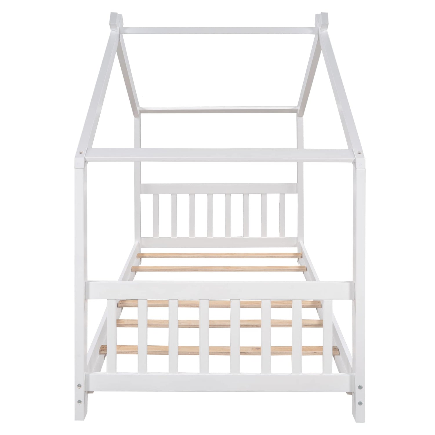 Merax Twin Kids House Bed Frame – Charming Wood Design with Headboard & Footboard in White