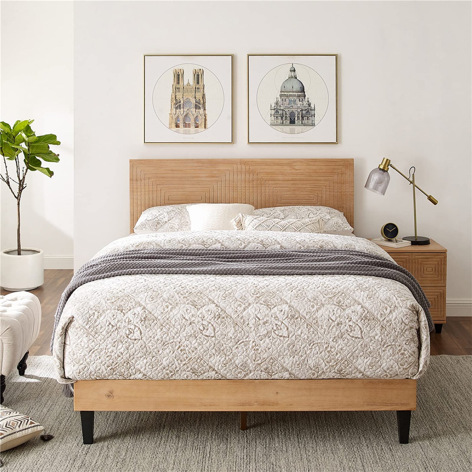MUSEHOMEINC Mid Century Modern Solid Wood King Size Platform Bed with Adjustable Headboard