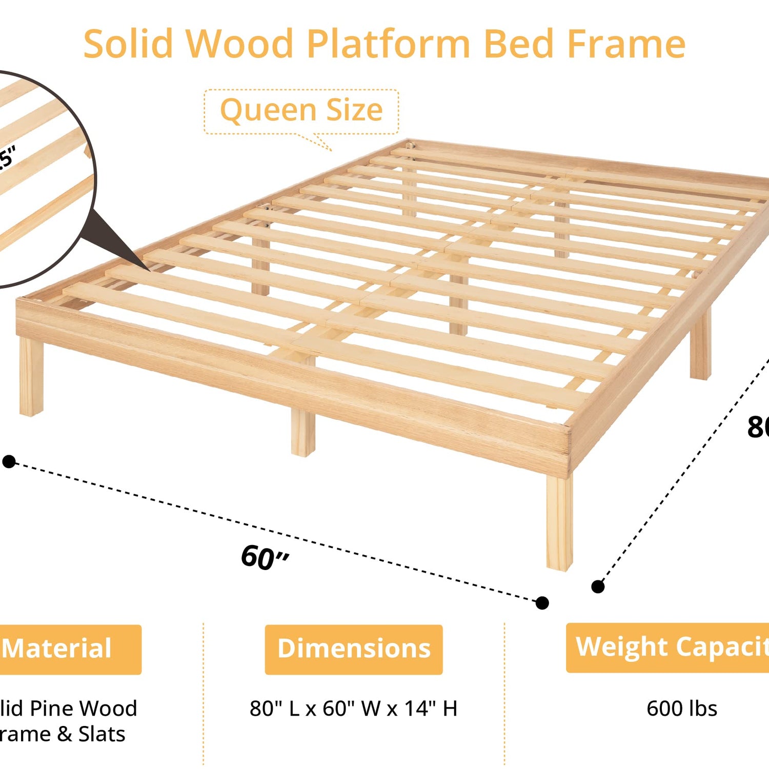 Naomi Home 14 Inch Pine Wood Queen Platform Bed Frame - Sturdy, No Squeak Design, No Box Spring Needed