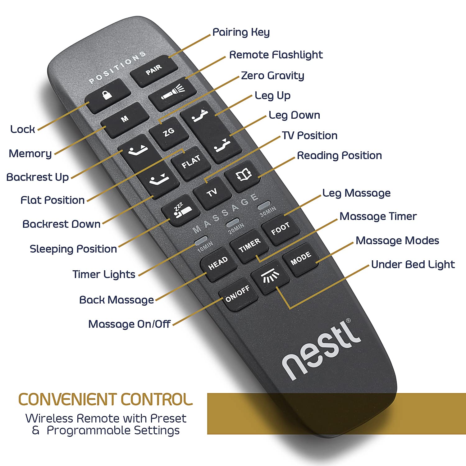 • EASY AND CONVENIENT: A wireless remote that features, manual position adjustments, programmable settings with one-touch preset positions, includes TV, lounge, zero-gravity, flat and anti-snore positions. Powerful motors which are whisper-quiet when adjusting positions.