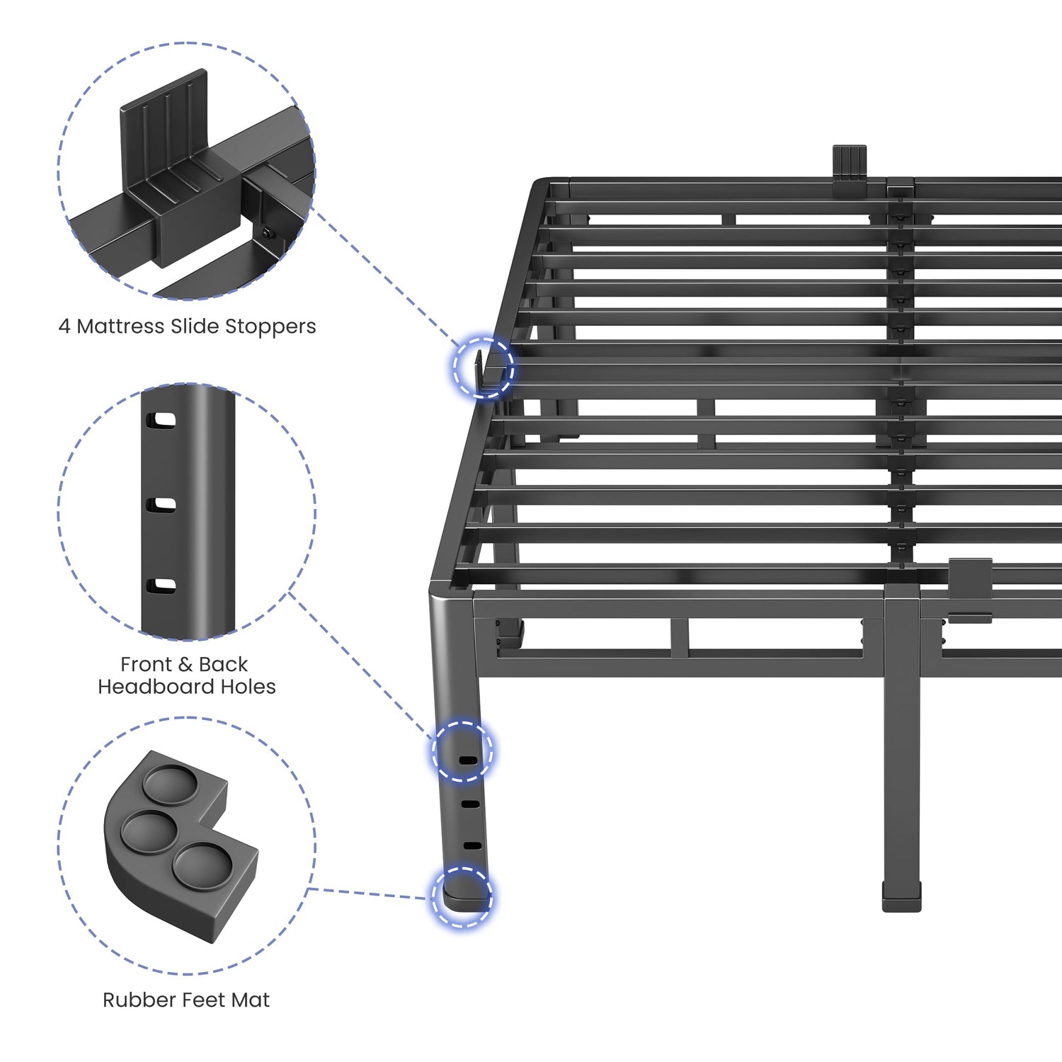 • 4 Mattress Baffles & Rubber Feet - Metal bed frame comes with 4 mattress Baffles to hold the mattress in place. The feet of the bed frame are fitted with rubber feet, non-slip and prevent scratches on the floor, as well as eliminating noise and keeping the night quiet.