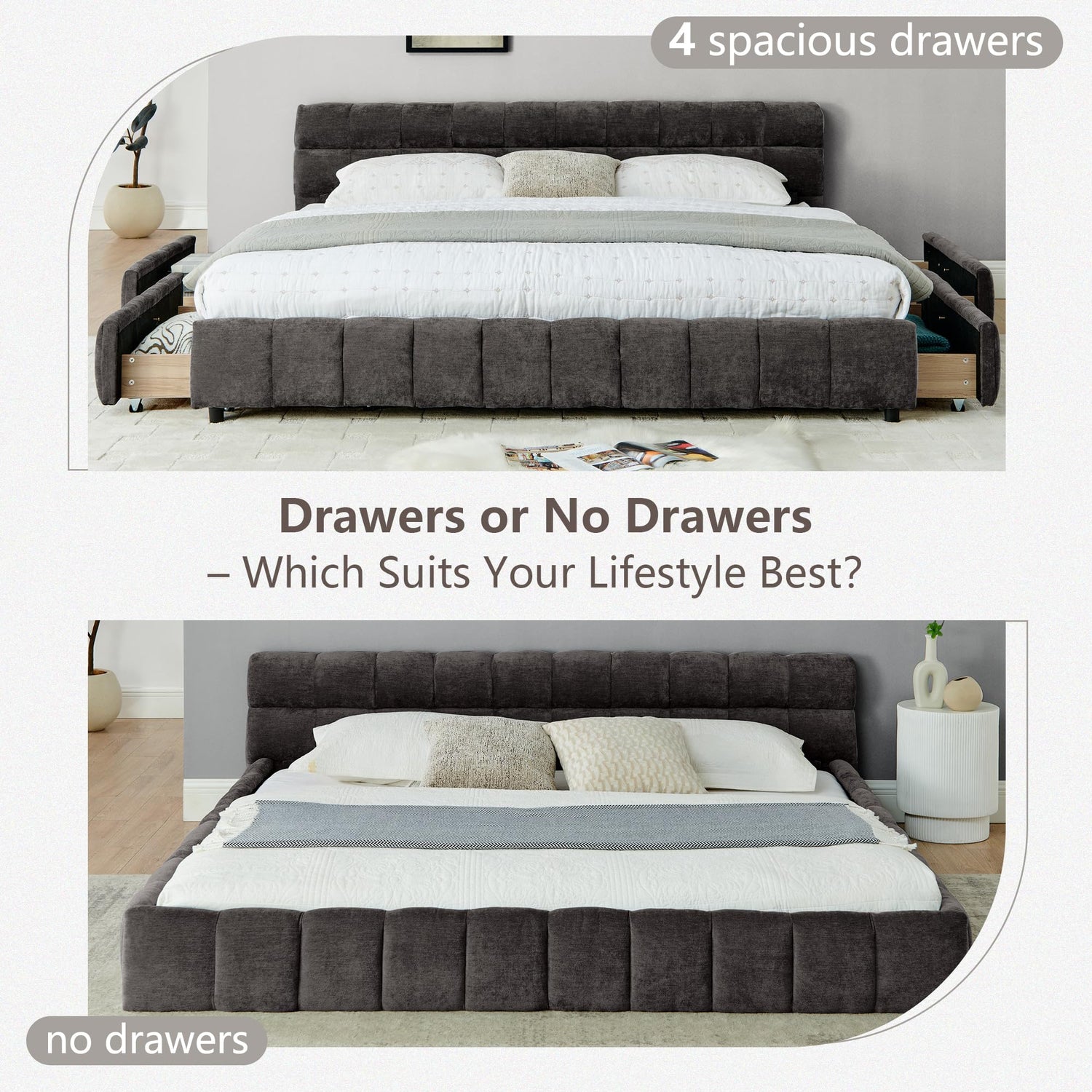 - "Perfect for Both Minimalists and Organization Lovers": This bed comes in two versatile styles—one with a sleek, no-drawer design for a minimalist look, and another featuring four spacious under-bed drawers to keep your space tidy and clutter-free.