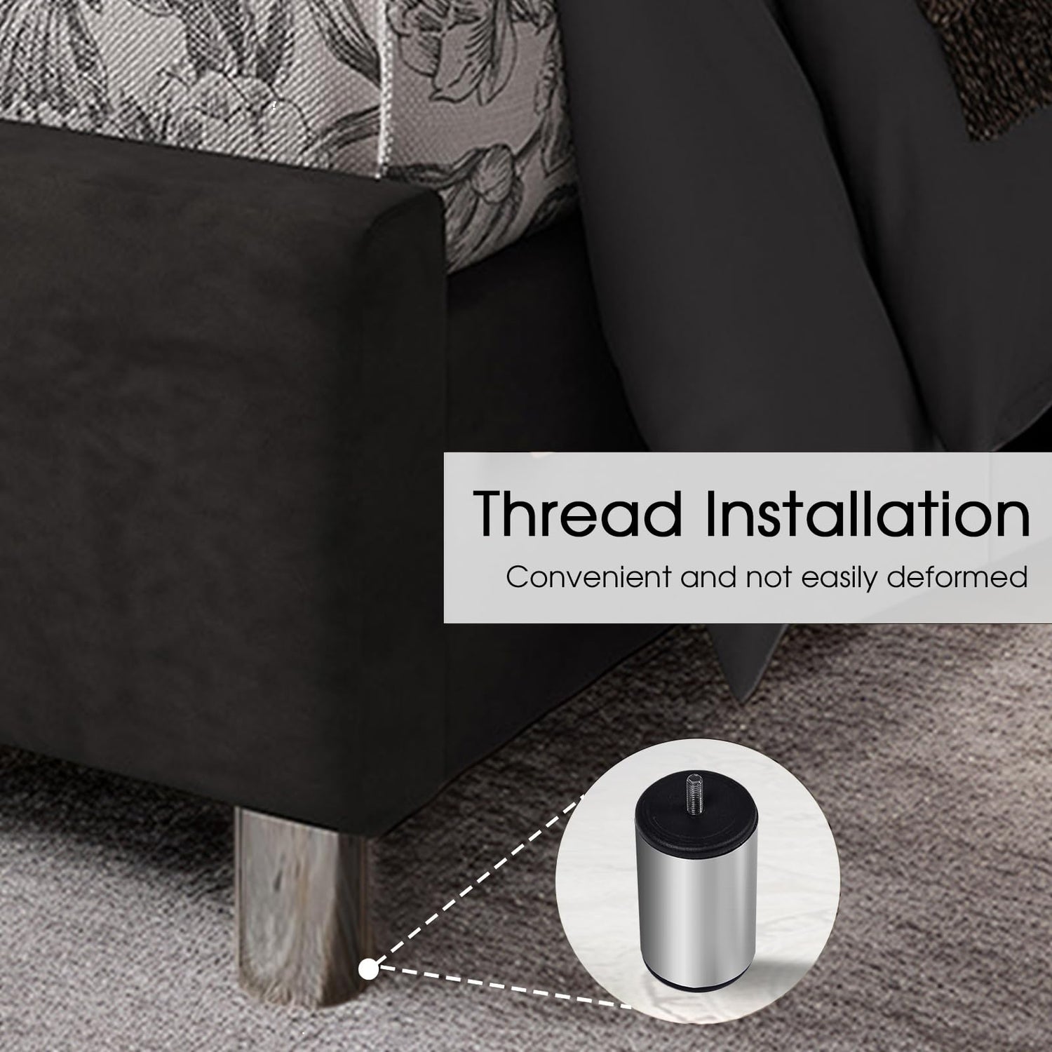 - Soft and Comfortable: High quality sponge and velvet fabric artfully wraps around the platform bed frame, with a delicate luster and soft feel, soothing your day's fatigue.