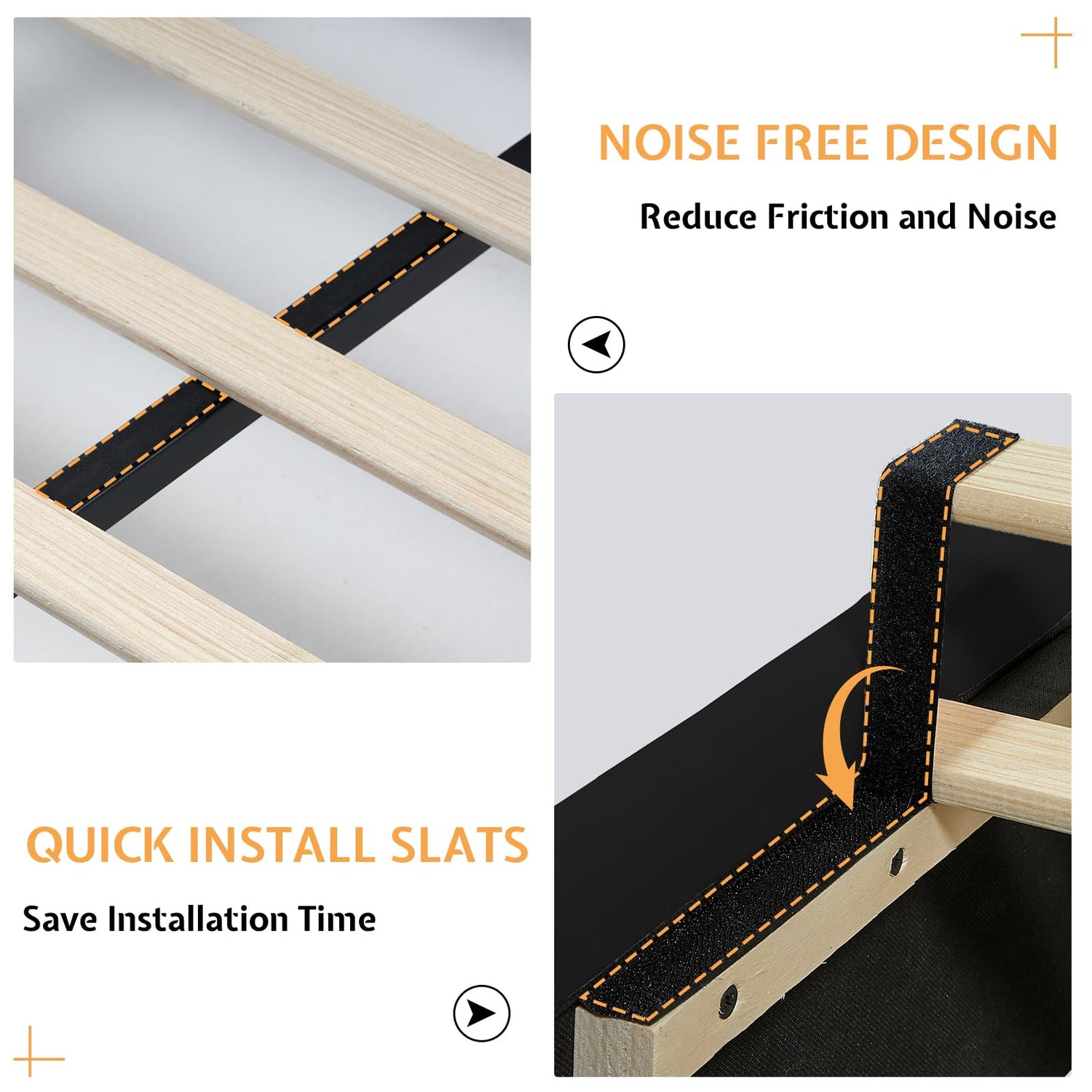 - Noise Free: EVA NON-SLIP STRIP is added on the middle metal slats, firmly holding the slats in place to prevent noise. Dual protections to promise you a sound sleep.