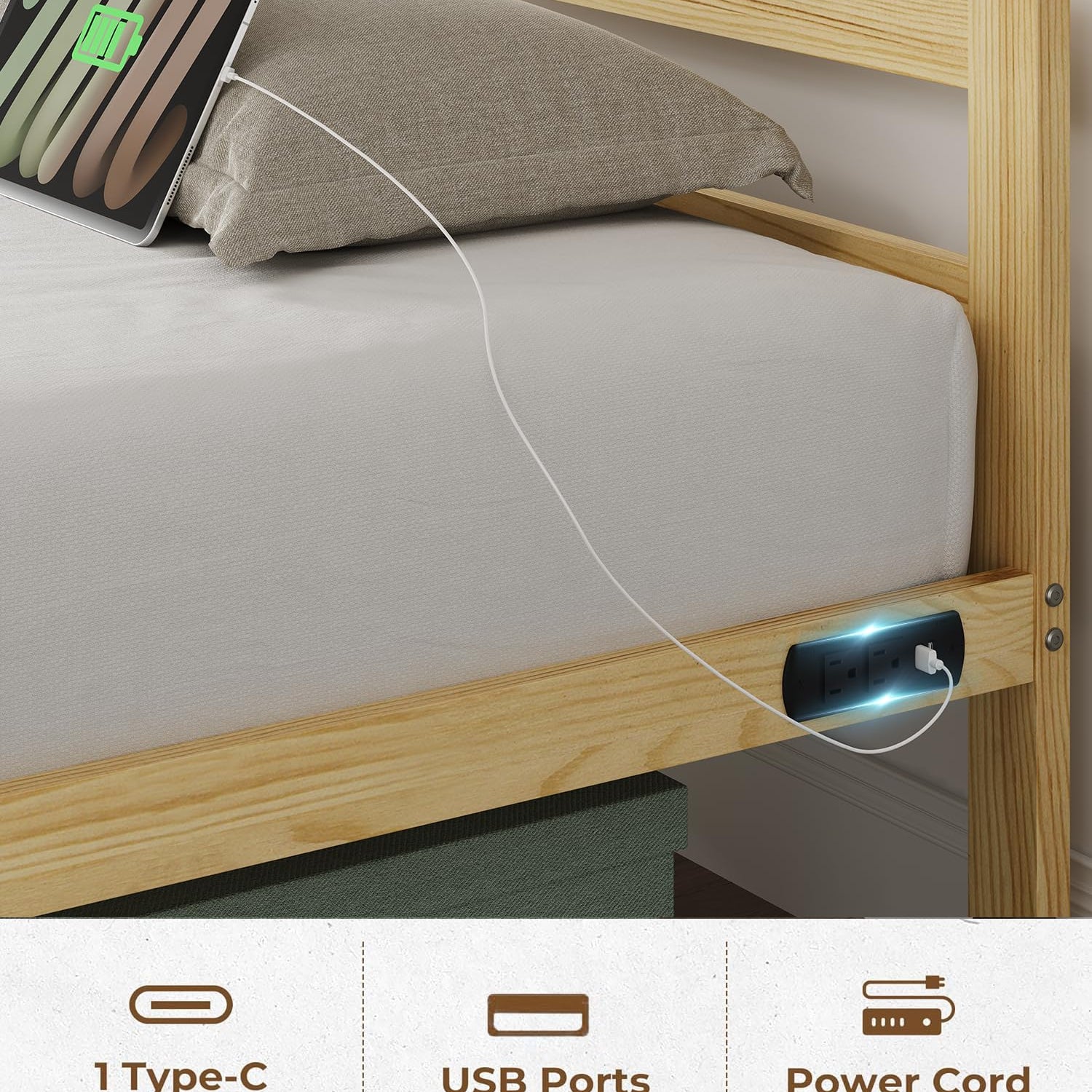 - 【Bed Frame with Charging Station 】 Metal platform bed recessed 1 USB port 1 Type-C port and 2 AC. this charging station can power your mobile phones, tablets and other electronic products, so you don’t have to worry about finding a charging port at night. Provide you with better convenience.