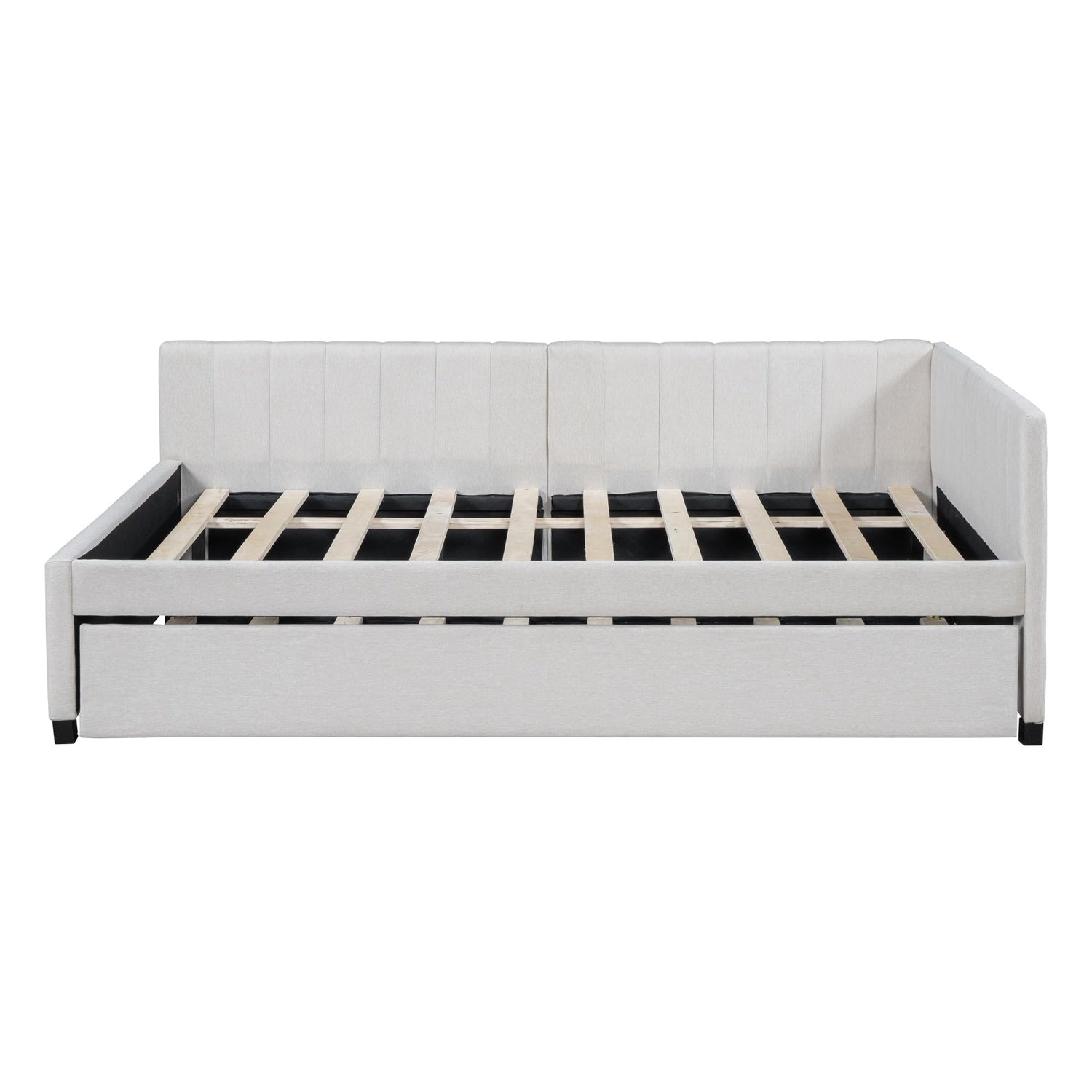 PVWIIK Full Size Daybed with Trundle for Bedroom,Guest Room,Solid Wood Bed Frame w/Wood Slat Support,Upholstered Backrest for Adults/Kid,No Box Spring Needed, Beige