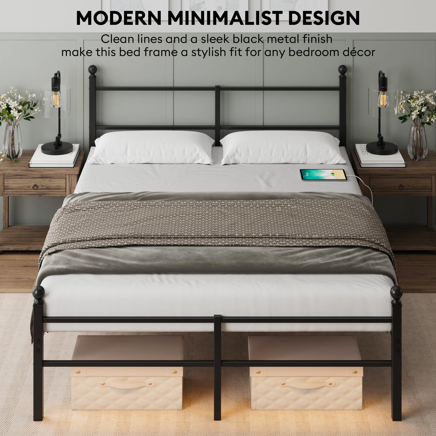Queen Size Bed Frame with Headboard - Metal Platform Bed with LED Lights, Charging Station, Under Bed Storage and Heavy Duty Steel Slats Support - No Box Spring Needed, Easy Assembly, Black