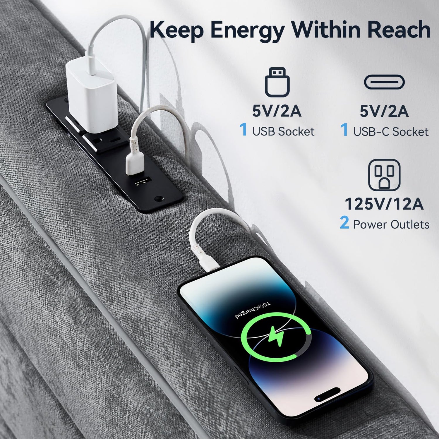- 【Headboard with Charging Station】 This queen bed frame come with built-in charging station in the soft headboard. There are 2 USB ports and 2 charging ports, allowing you to charge various electronic devices especially phone within easy reach, and bring much convenience to daily life