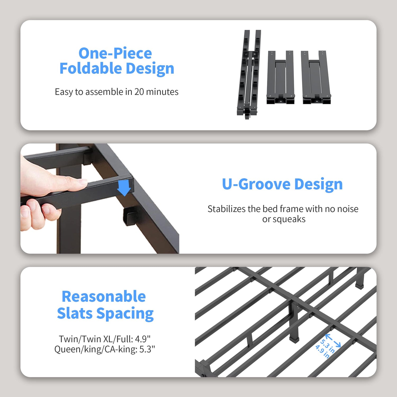 ROIL 14 Inch Twin Size Bed Frame with Mattress Slide Stopper - Single Black Basic Anti Squeak Steel Slats Metal Platform, Heavy Duty Noise Free Easy Assembly Bedframes, No Box Spring Needed