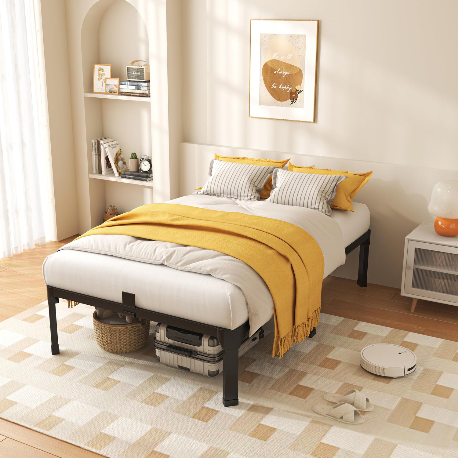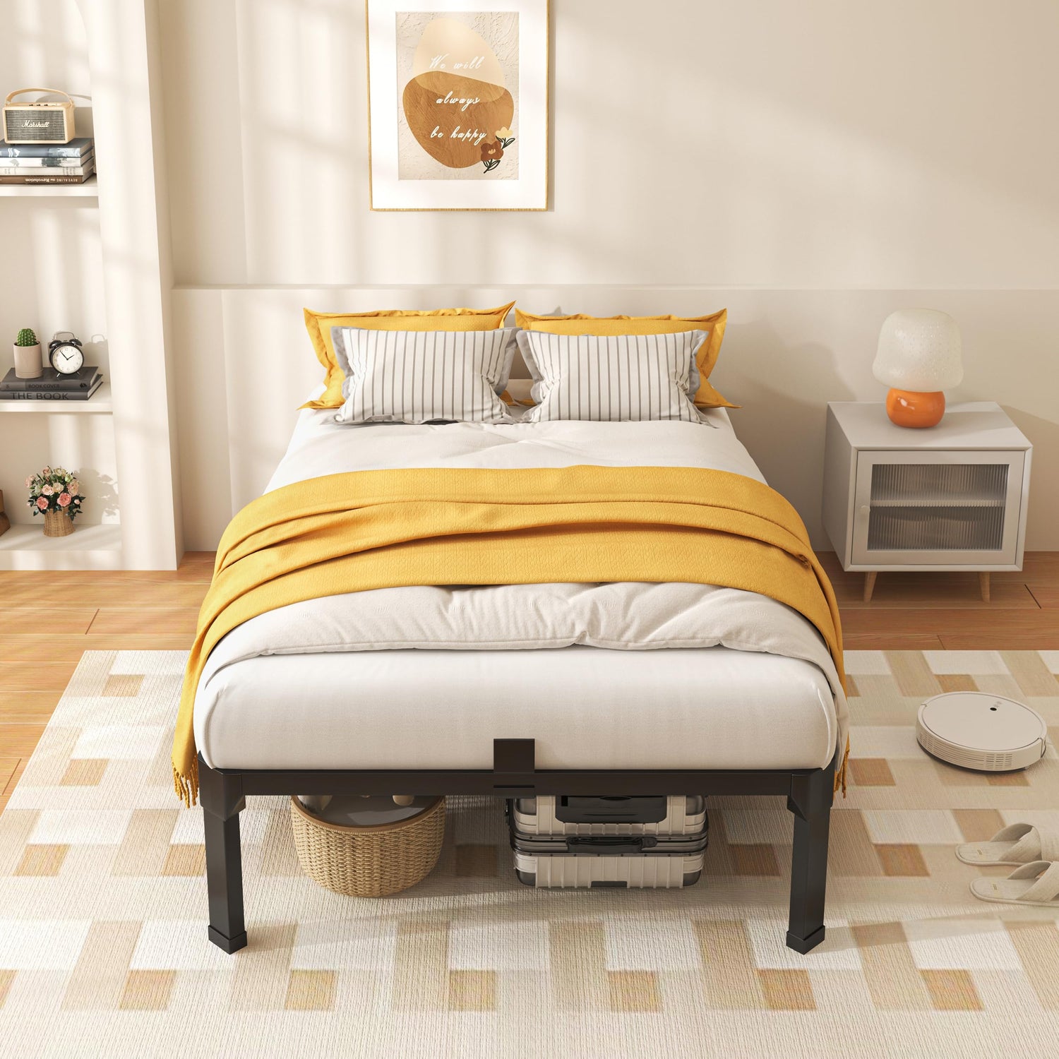 - NOISE ELIMINATION - No Box spring needed for the Twin platform bed frame. Rubber cushion of the metal twin bed frame is good for noise elimination, Every bed legs designed with anti-scratch gaskets to protect your fancy floor and provides you with a peaceful sleep.The twin size bed frame is completely simple style. This Twin platform bed frame is the prefect choice for residence bedroom, guest rooms, dormitories, apartments and short visiting families or friends.