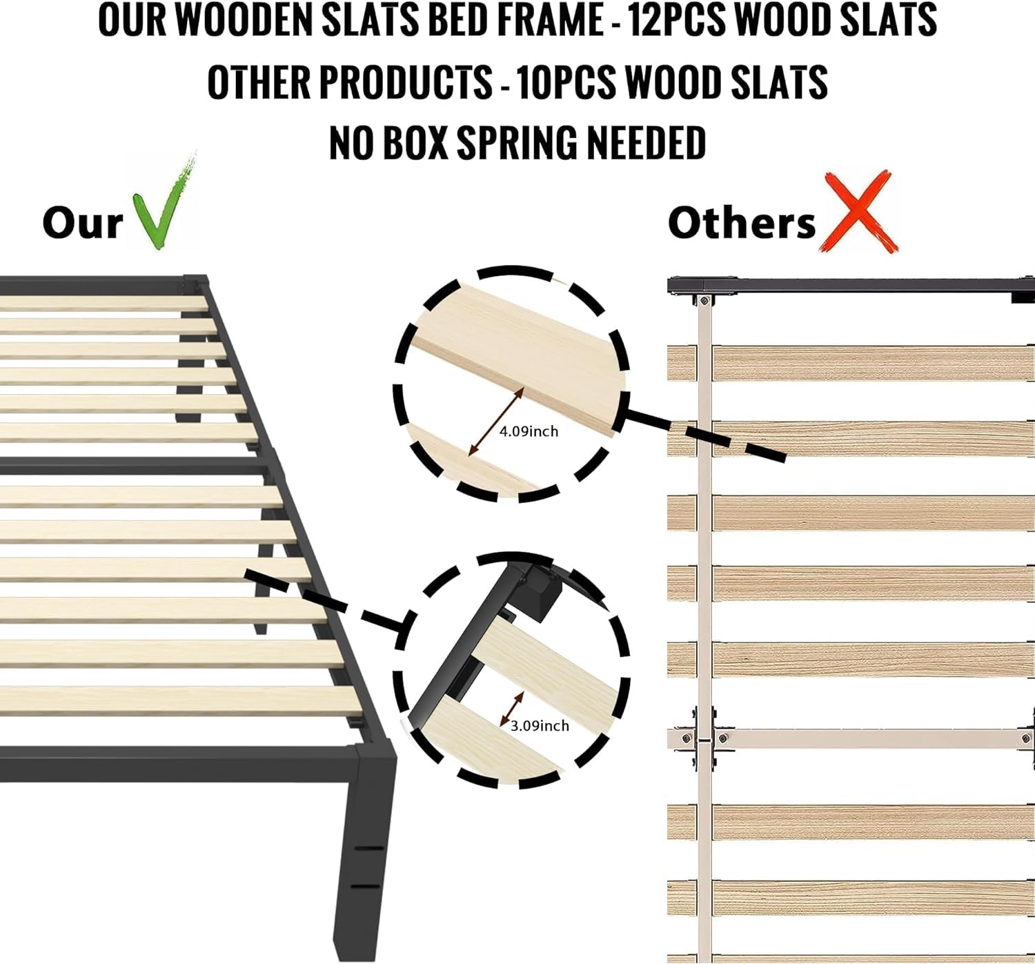 ROIL 18 Inch Heavy Duty King Bed Frame with Wooden Slats and Under-Bed Storage