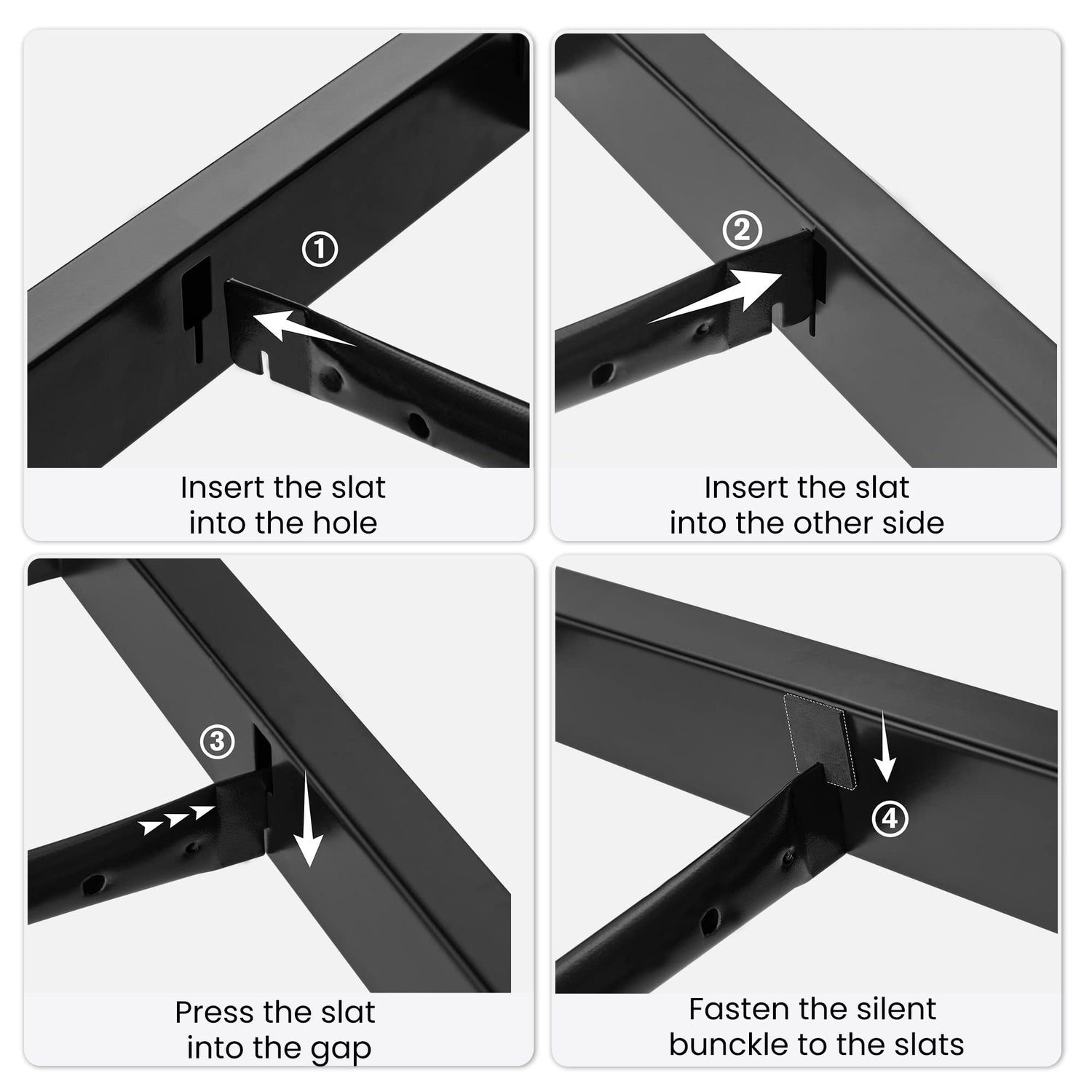 - Sturdy Bed Frame Foundation: 15 strong metal slats with 9 independent support legs, and a heavy-duty squared metal framework provide 900lbs. capacity. The upgraded lock design fixes the slats firmly to stabilize the queen bed frame.