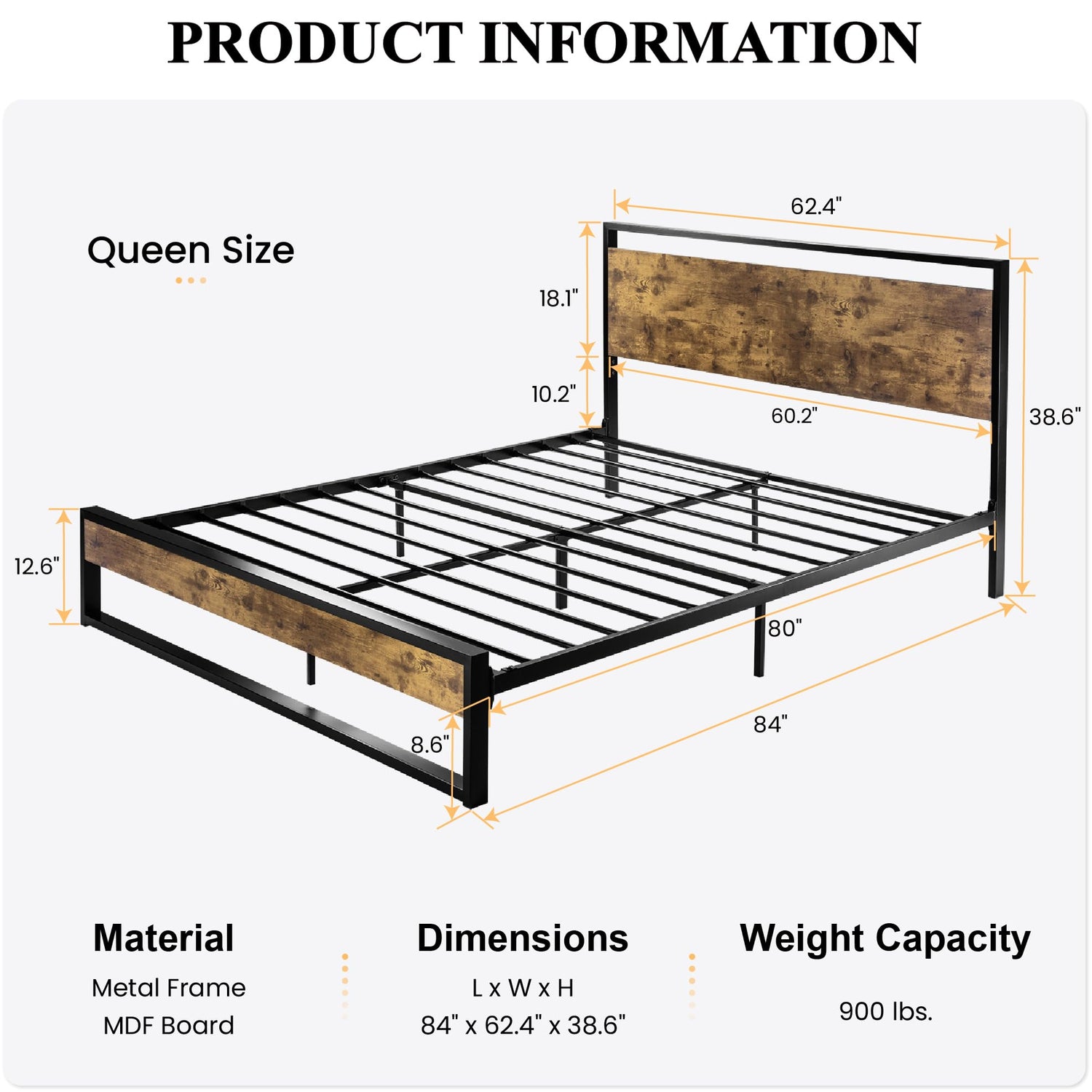 - No Box Spring Needed: Designed with strong metal slats support, this queen platform bed frame does not require a box spring or any other additional foundations.