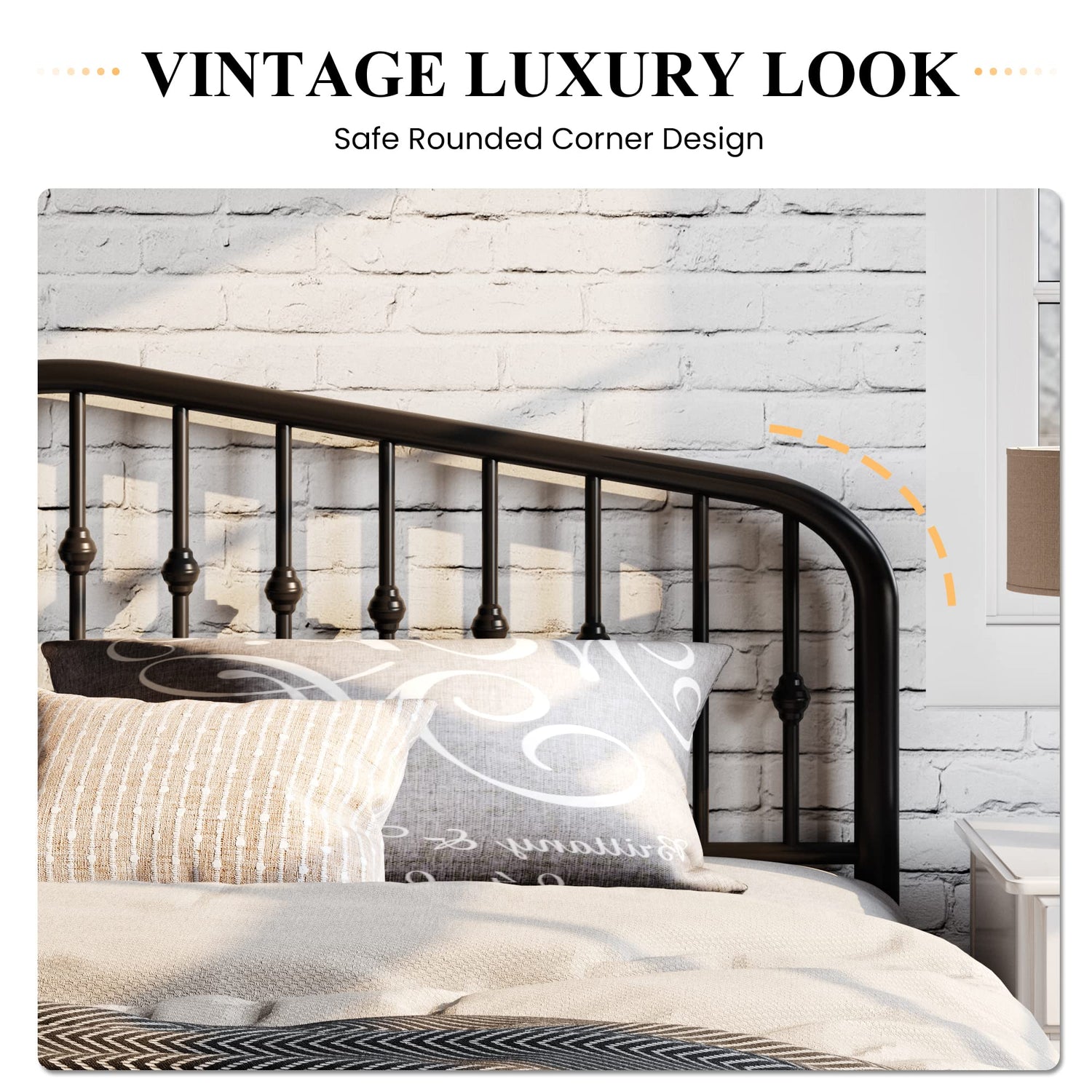 Transform your bedroom into a vintage retreat with the SHA CERLIN Victorian-Style Queen Metal Platform Bed Frame in Black. This stunning bed frame seamlessly merges rustic charm with modern design, making it a versatile addition to any home décor.
