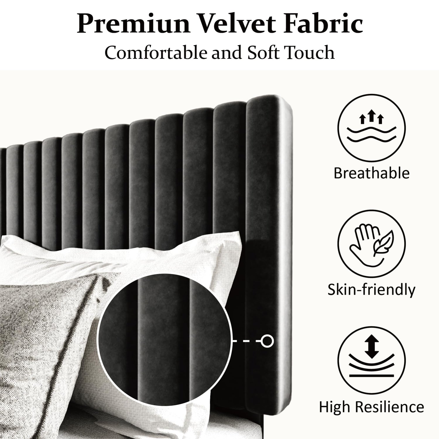 • Comfortable and Elegance: The vertical channel tufted headboard is wrapped in smooth velvet and built-in soft foam, introducing a touch of elegance to any bedroom