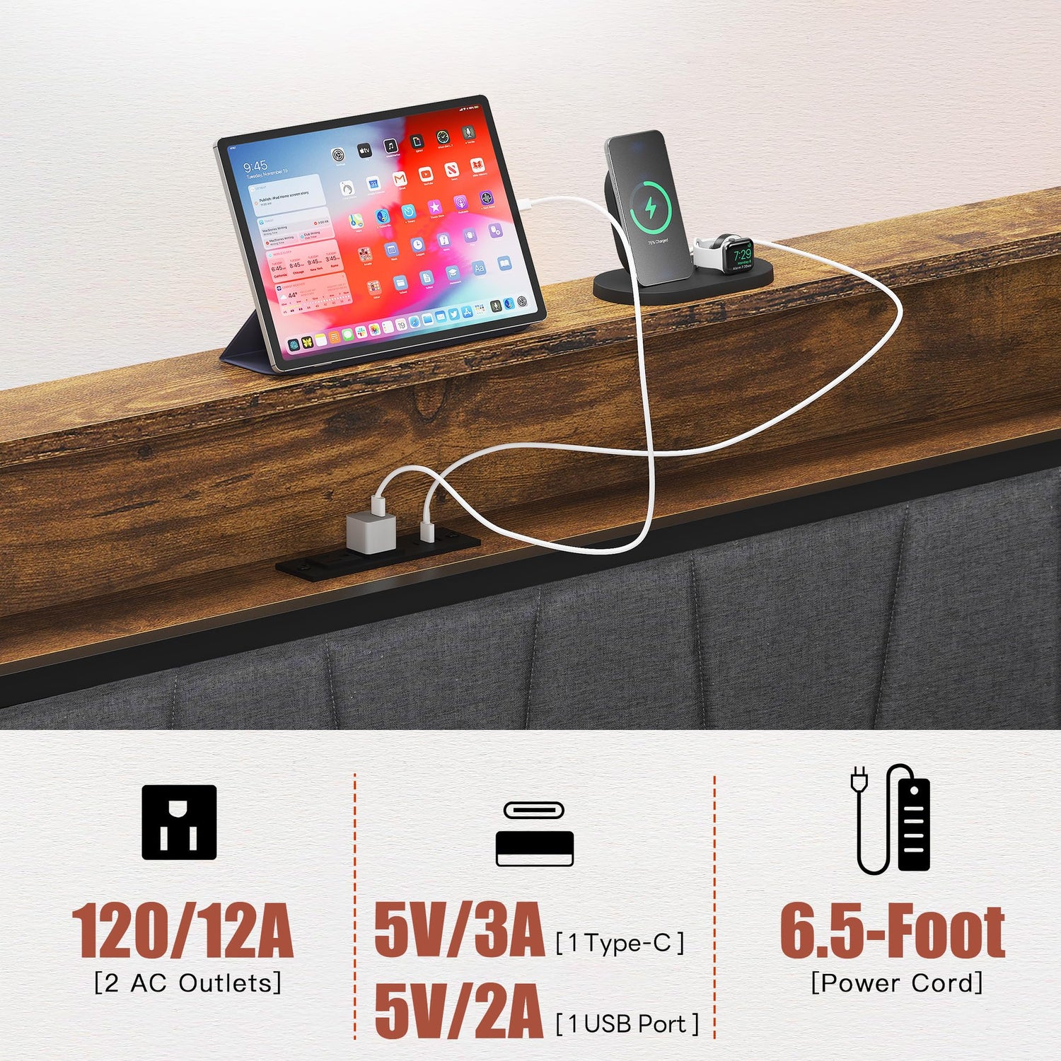 - 【Convenient Charging Station】: For convenience, 2 power sockets, 1 USB port, and 1 TYPE-C port have been added to this queen size bed frame, allowing you to charge your phone or tablet without leaving the comfort of your bed.