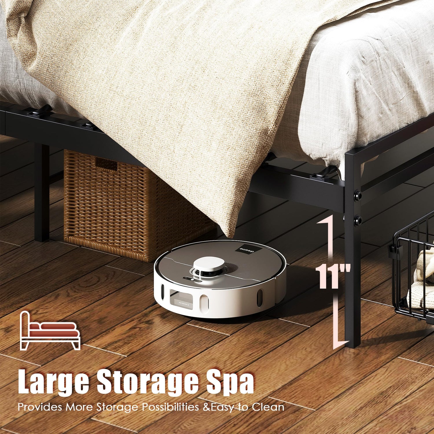 - 【Stable and Easy Assembly】: The solid stainless steel frame inside the bed frame provides durability and stability, creating a noise-free environment. With a load capacity of up to 800 lbs for this queen bed, the bolt-free quick-lock assembly system secures the slats, saving you time and energy. This system offers great support for all types of mattresses without the need for a box spring.