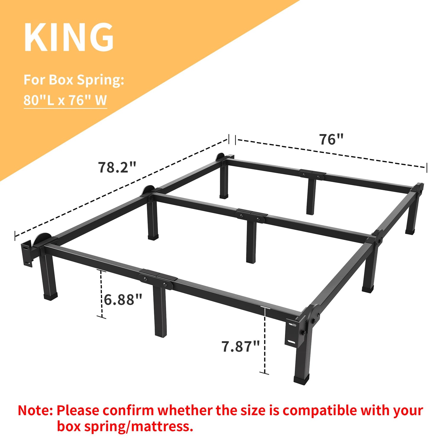 Superay Metal Bed Frame, 9-Leg Bed Base 8 inches Support for Box Spring and Mattress Set, King, Easy Assembly, Black