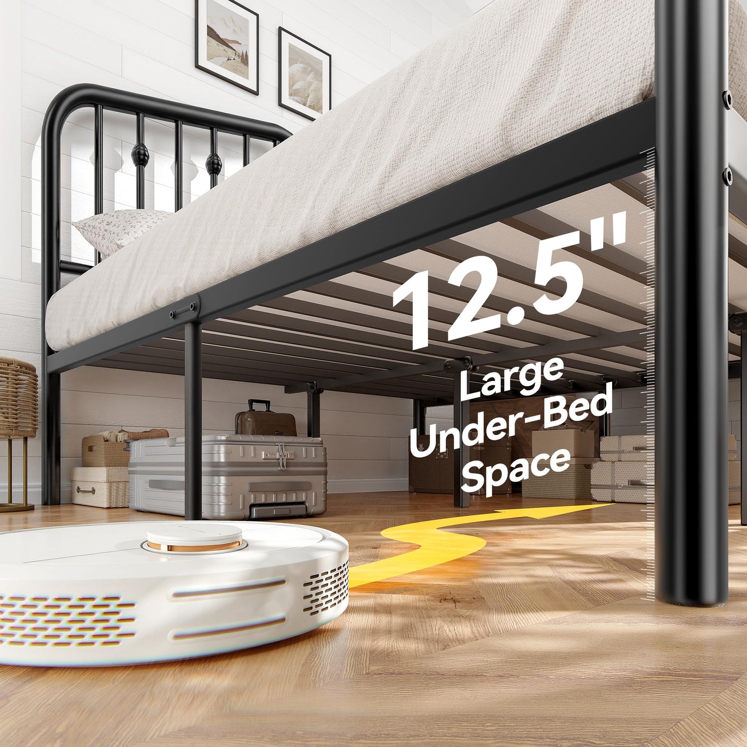 - ✅【12.5" Spacious Under-bed Storage】Featuring 12.5 inches of under-bed clearance, our metal bed frame queen size offers ample space for your boxes, luggage or shoes storage, ensuring both practicality and convenience for everyday use. The generous height simplifies cleaning, allowing tools to glide smoothly underneath. This versatile design combines functionality and style, providing a sleek bedroom aesthetic while maximizing space efficiency