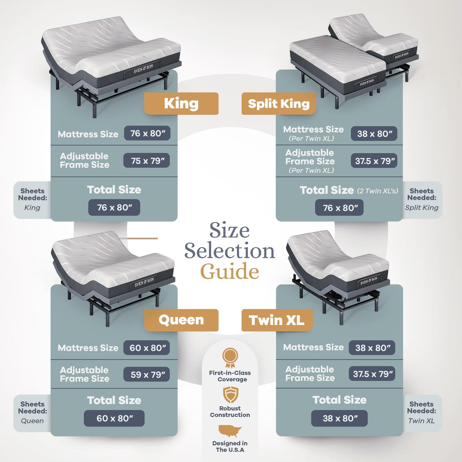 • Comprehensive Warranty & Features: Beyond unmatched coverage with our 25-year warranty (a $599 value), this bed frame promises durability and reliability. The mattress retention system ensures stability, while adjustable legs cater to your height preference. Every feature, from the emergency power-down to the remote layout, has been thoughtfully designed for your convenience.