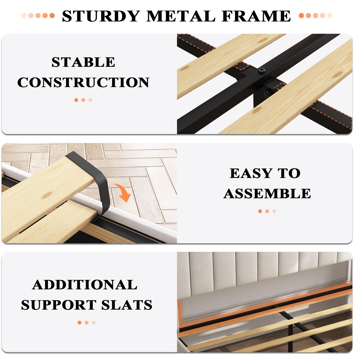 Elevate your sleeping experience and style with the TIGUBFRE Beige Full Size Upholstered Bed Frame – functionality meets elegance in a design that truly enhances your bedroom.