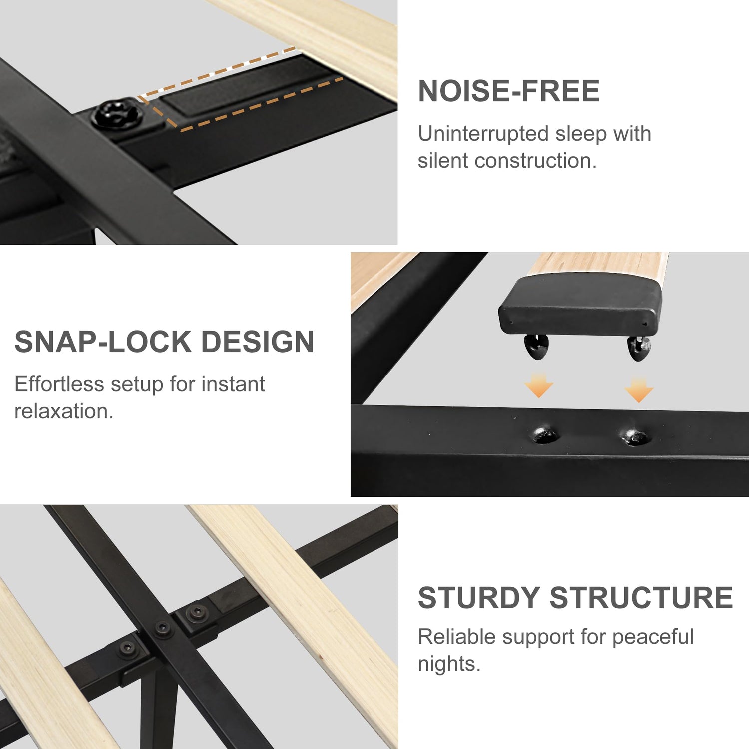 - NOISE-FREE PLATFORM BED FRAMES: Enjoy a peaceful night's sleep with the sturdy full bed frame with headboard that features EVA foam tape that minimizes noise and vibration. Say goodbye to squeaky noises and disturbances so you can fully relax and enjoy an uninterrupted sleep