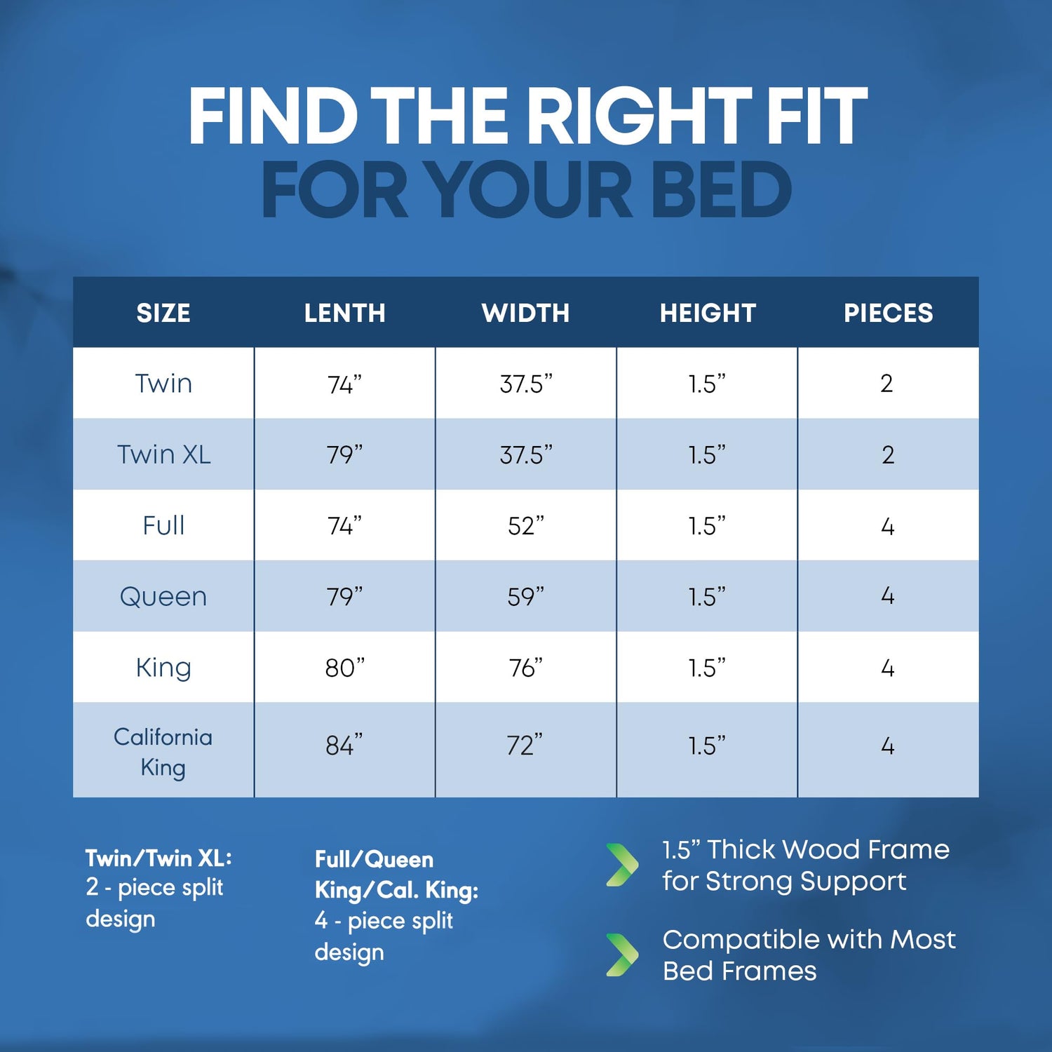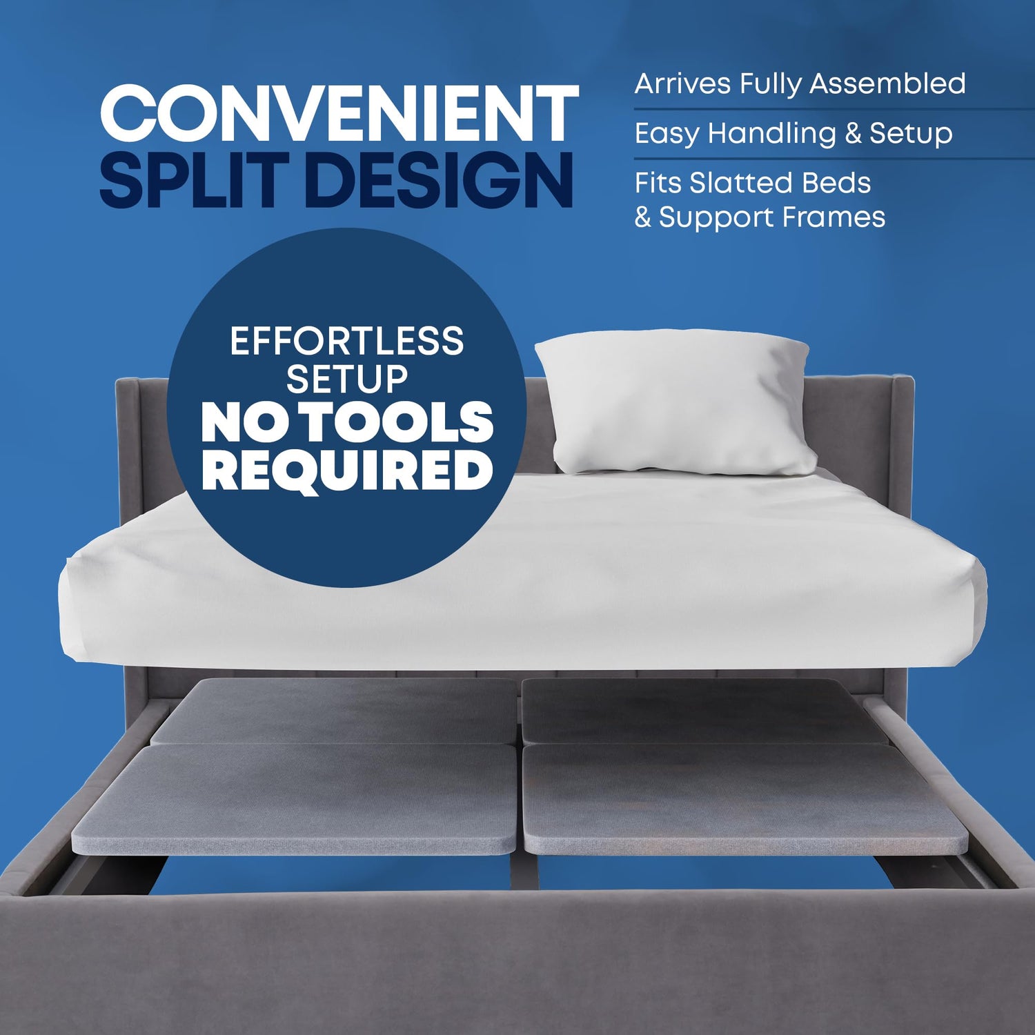 4-piece split design for Queen, King, and Cal King sizes. Provides sturdy support for bigger mattresses. It works great for standard bed frames that need extra strength, helping to stop sagging early and keeping your mattress firm and comfortable longer.