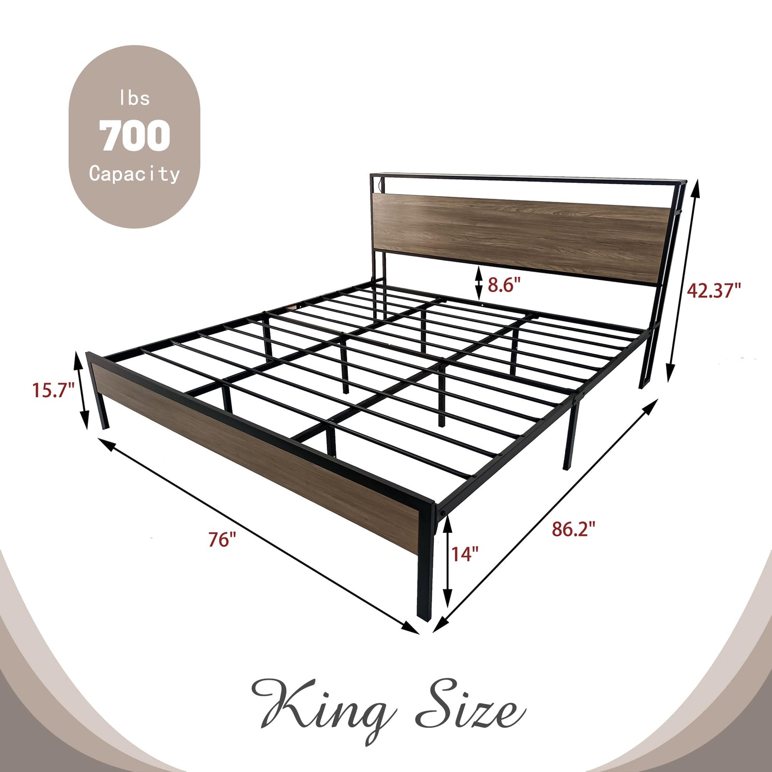 Crafted from premium materials, the Tuconia Grey King Bed Frame offers robust support for all mattress types, be it foam, latex, or innerspring—eliminating the need for a box spring. The headboard features a stylish waterproof and scratch-resistant MDF, beautifully finished with a contemporary wood-grain look that will enhance the elegance of any bedroom.