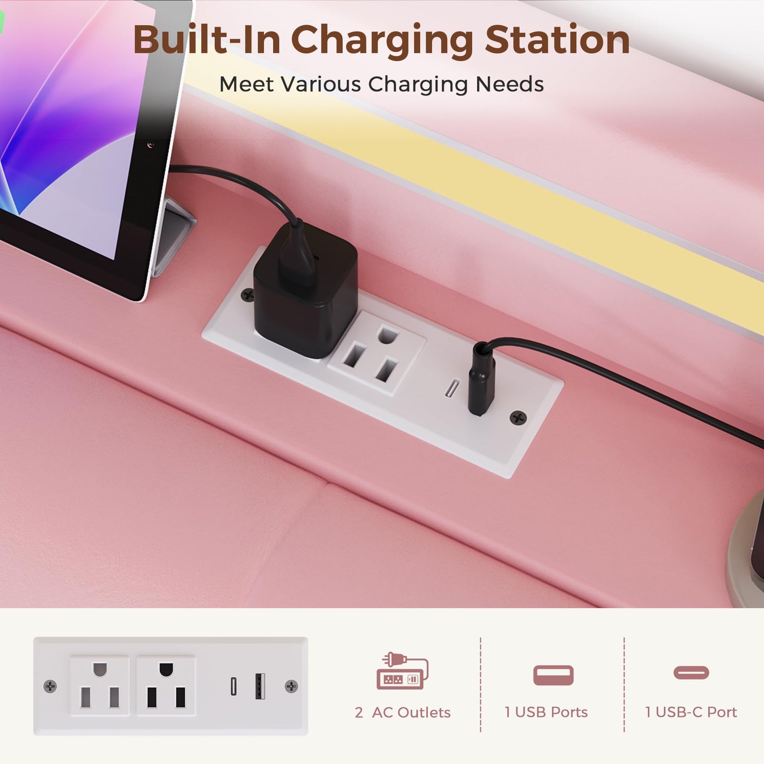 - ALL-IN-ONE INTEGRATED CHARGING STATION: The built-in charging hub features 2 AC outlets, 2 USB ports, and 1USB-C port. It powers everything from your phone and laptop to lamps and tablets. Keep all your devices powered up and within reach, eliminating messy cable clutter and the need for ugly extension cords
