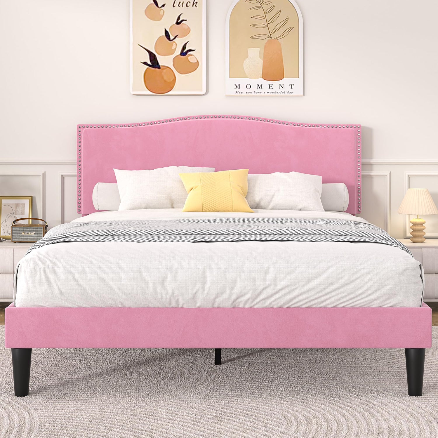 - đăPremium MaterialsăThe surface is made of soft velvet, which is skin-friendly and easy to clean. The interior of the bed headboard is filled with environmentally friendly high-density rebound sponge, making the back more comfortable to lean on.Meanwhile, bed frame with rivet headboard makes the whole bed more stable and unshakable.