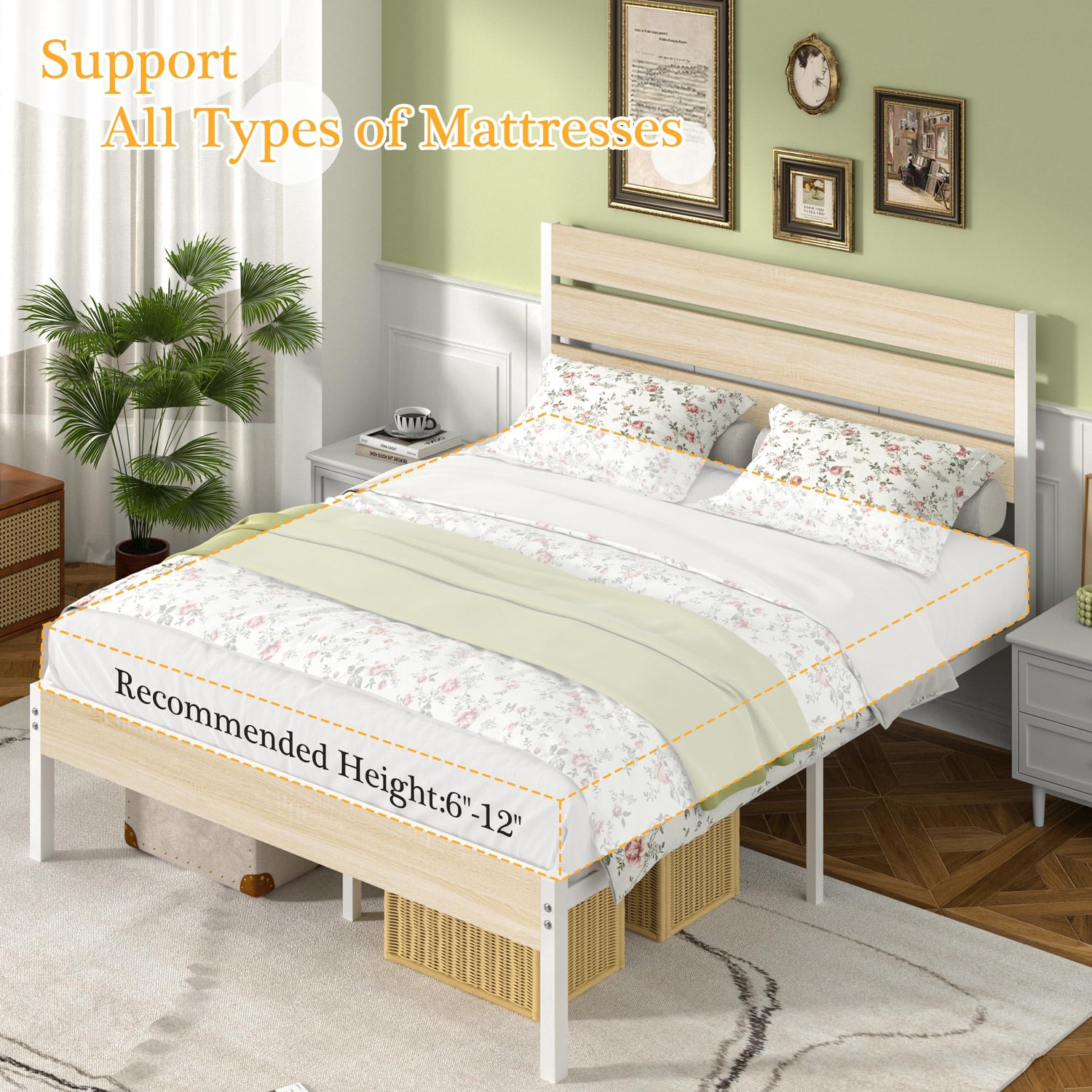 Featuring a sleek, clean-lined metal frame, it seamlessly complements any room's decor. The natural wood grain headboard adds a touch of retro charm and a refreshing atmosphere to your bedroom.