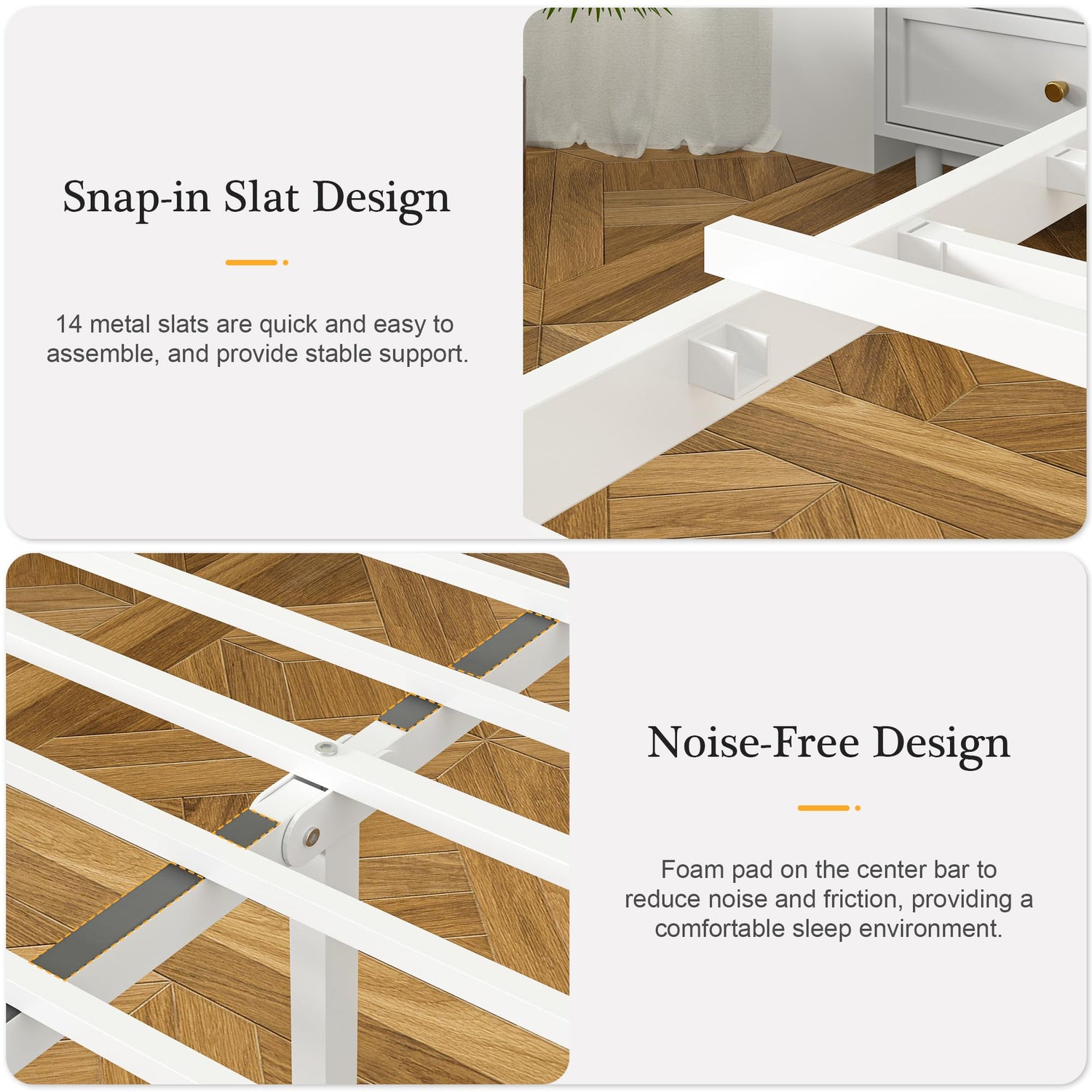 - Noise-Free Design: Designed to enhance your sleep environment, this bed frame incorporates a foam pad on the center bar to reduce noise and friction, allowing you to sleep peacefully without disturbance, providing a comfortable sleep environment without the need for a box spring.
