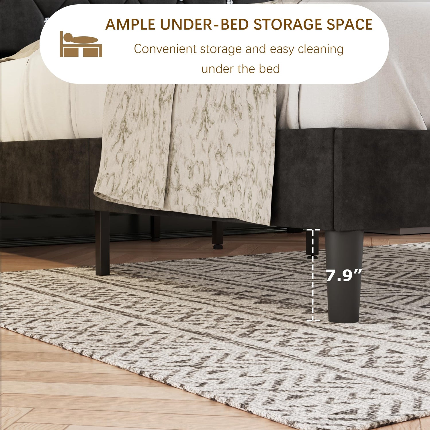 - [Aesthetic and Elegant Design] - This full bed frame features a black velvet headboard adorned with diamond and tufted details, creating a visually appealing and elegant atmosphere. Its low-key yet exquisite style fits well with various bedroom decors.