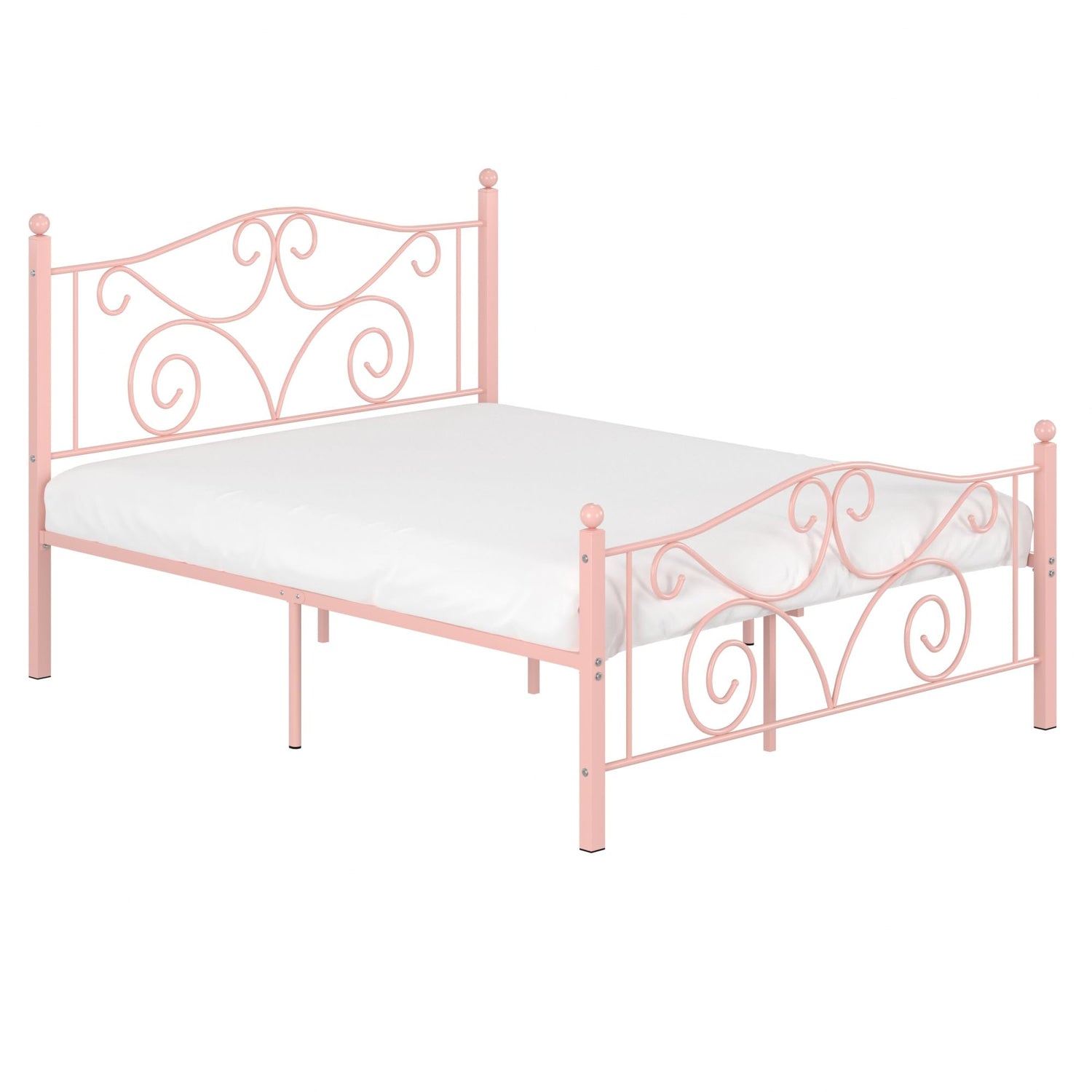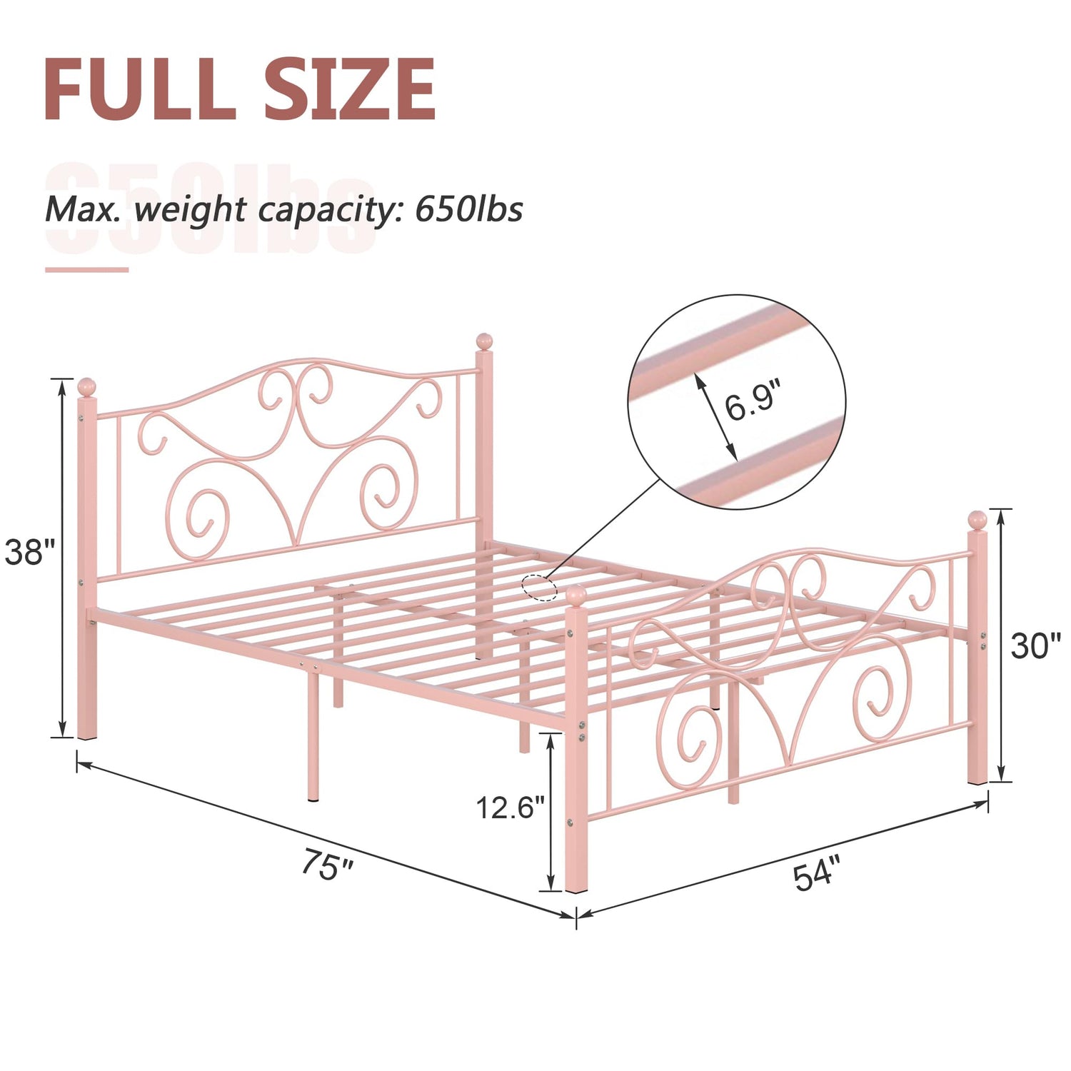 VECELO Full Size Bed Frame with Headboard and Footboard, Heavy Duty Metal Slat Support, Platform Mattress Foundation, No Box Spring Needed, Easy Assembly, Light Pink