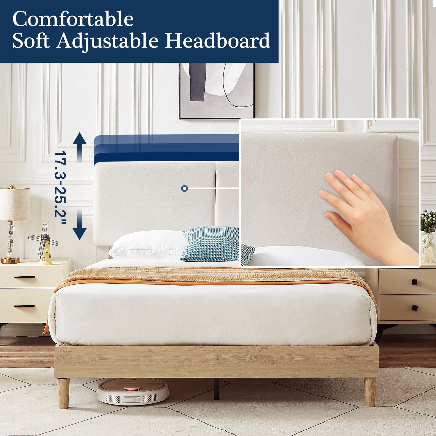 VECELO Adjustable Beige Upholstered Queen Bed Frame with Heavy-Duty Slats and Noise-Free Design