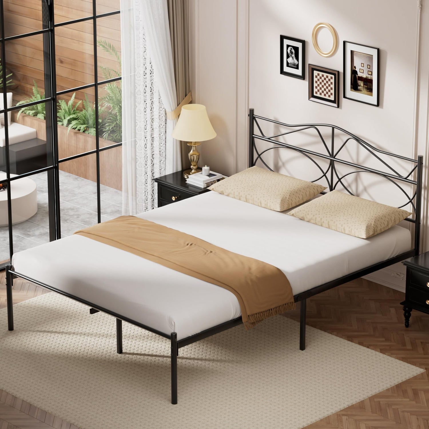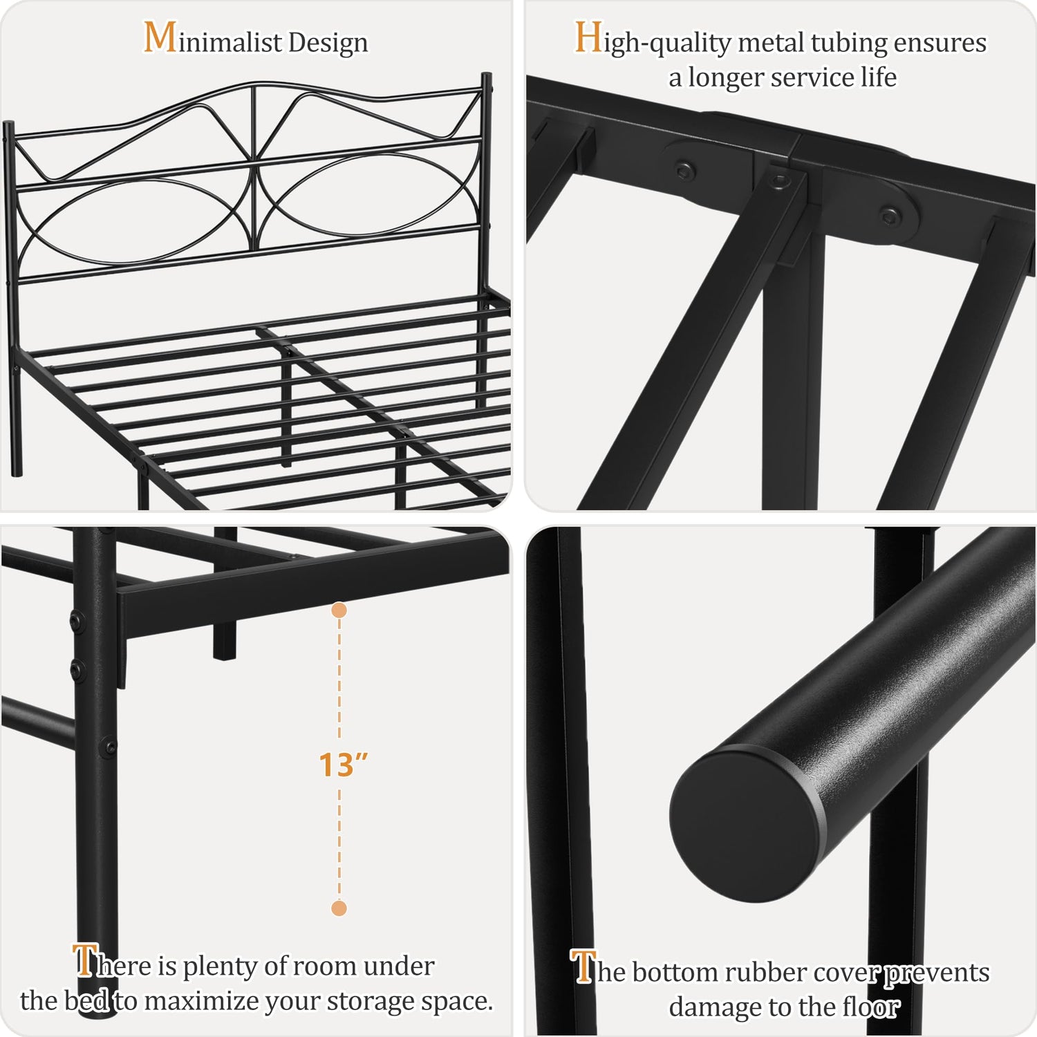 • Sleek Style: Available in Twin, Full, and Queen sizes, this metal bed frame features a curved headboard design in a classic black finish, seamlessly fitting into a variety of décor styles.
