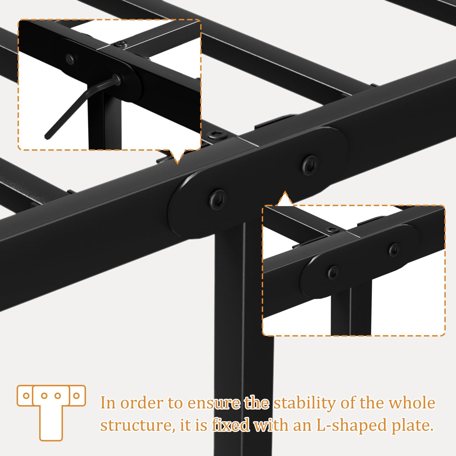 • Sturdy Metal Bed Frame: This queen bed frame is built with 12 reinforced metal slats and 9 durable vertical side legs, offering robust support. The upgraded metal construction ensures a solid and stable bed platform.