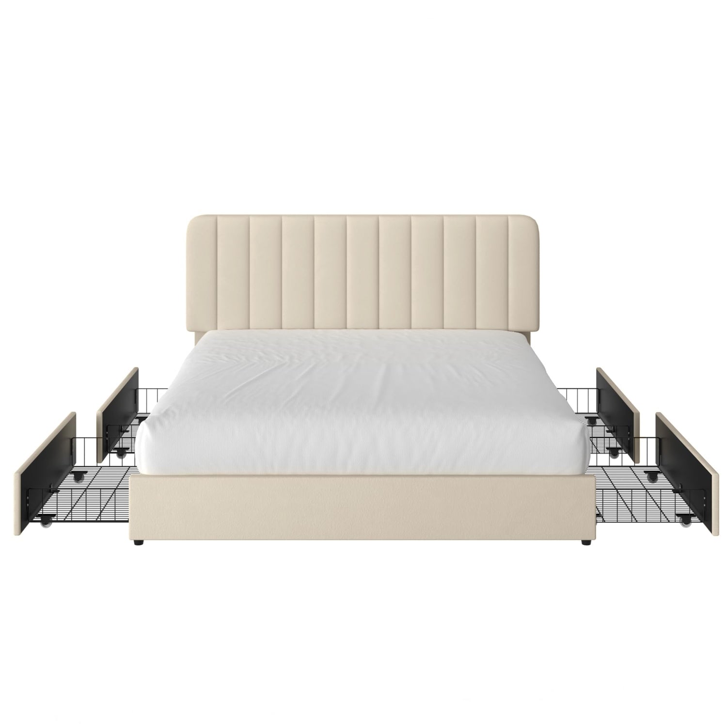 VECELO Queen Size Upholstered Bed Frame with 4 Drawers and Headboard, Velvet Platform Storage Bedframe, Wooden Slats Support, No Box Spring Needed, Beige