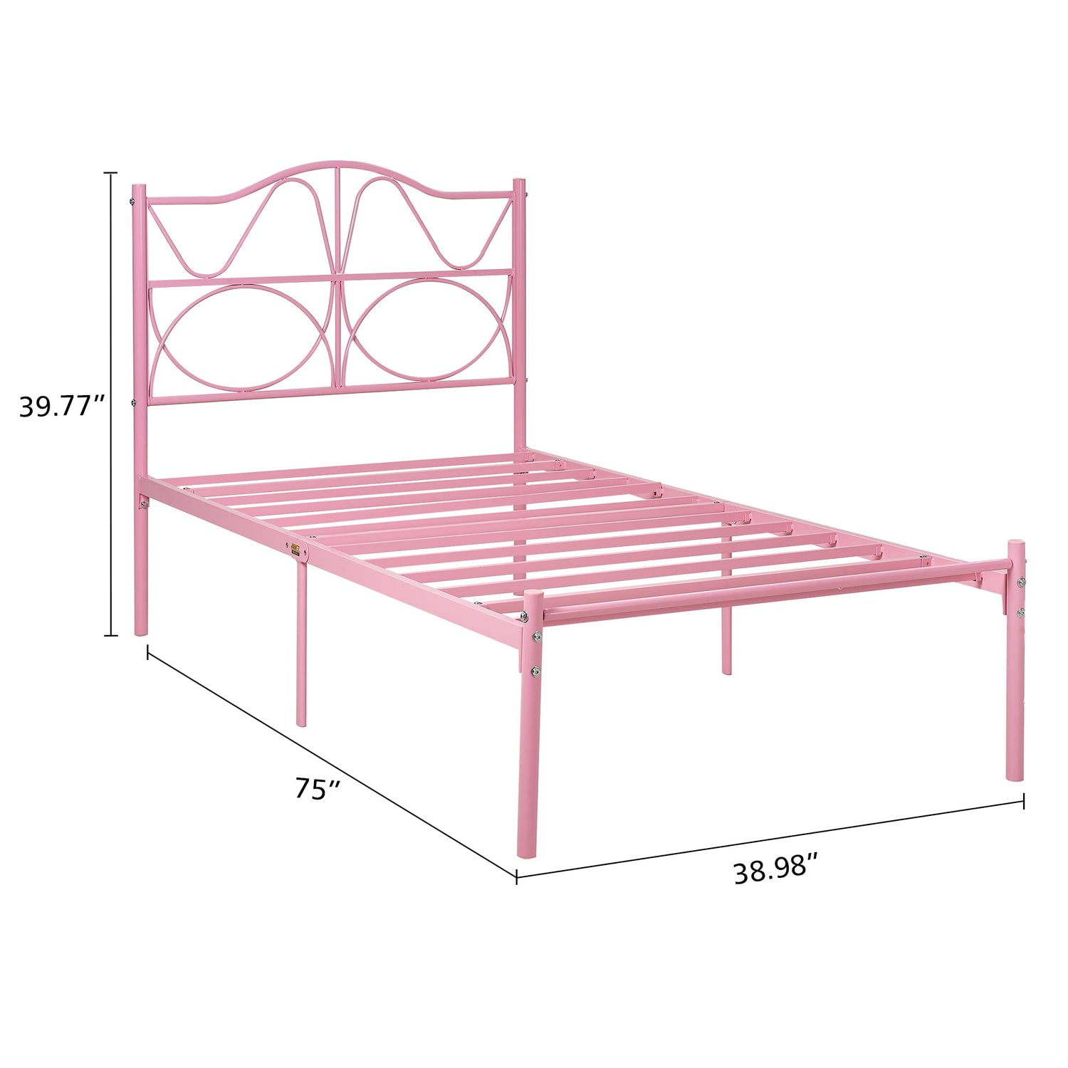 VECELO Twin Size Bed Frame, Metal Bed Platform with Headboard, Sturdy Steel Slats Support, No Box Spring Needed/Noise-Free,Easy Assembly, Pink