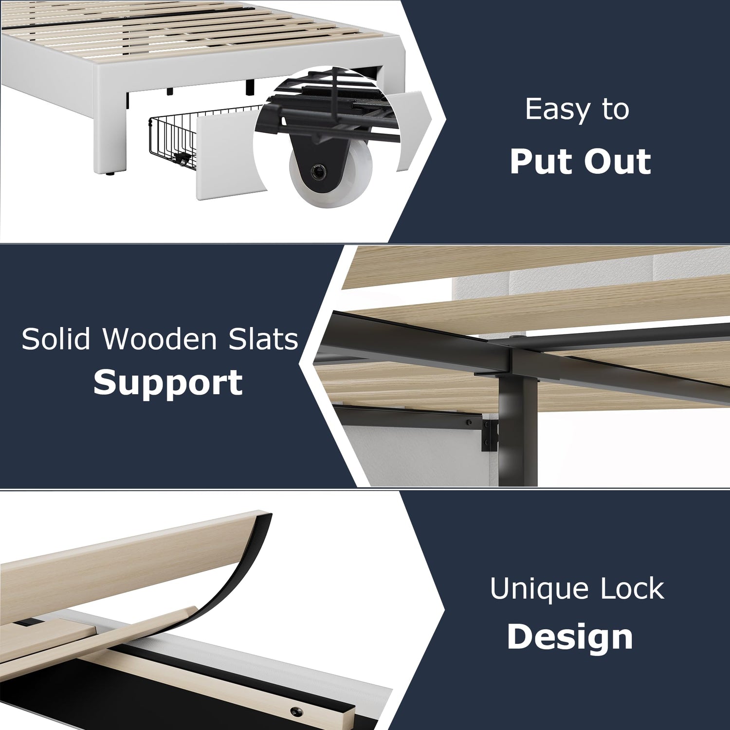 - [High-Quality Materials and Comfy Support] - The twin bed frame with storage is cushioned with high-density foam for ultimate comfort, while the frame’s sturdy wood slats and steel structure ensure it’s here to last.