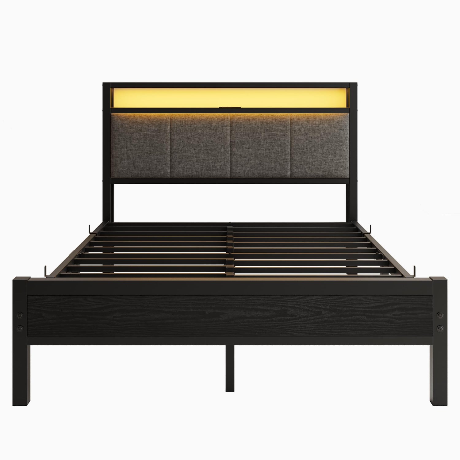 - 【Bed Frame with Charging Station & Storage Headboard】The headboard with shelves could keep items like glasses, phones, and books within easy reach, while also giving you extra space to decorate your home. It is also equipped with 2 Standard Plug Outlets and 2 USB ports to conveniently charge your tablet, phone or other mobile devices.