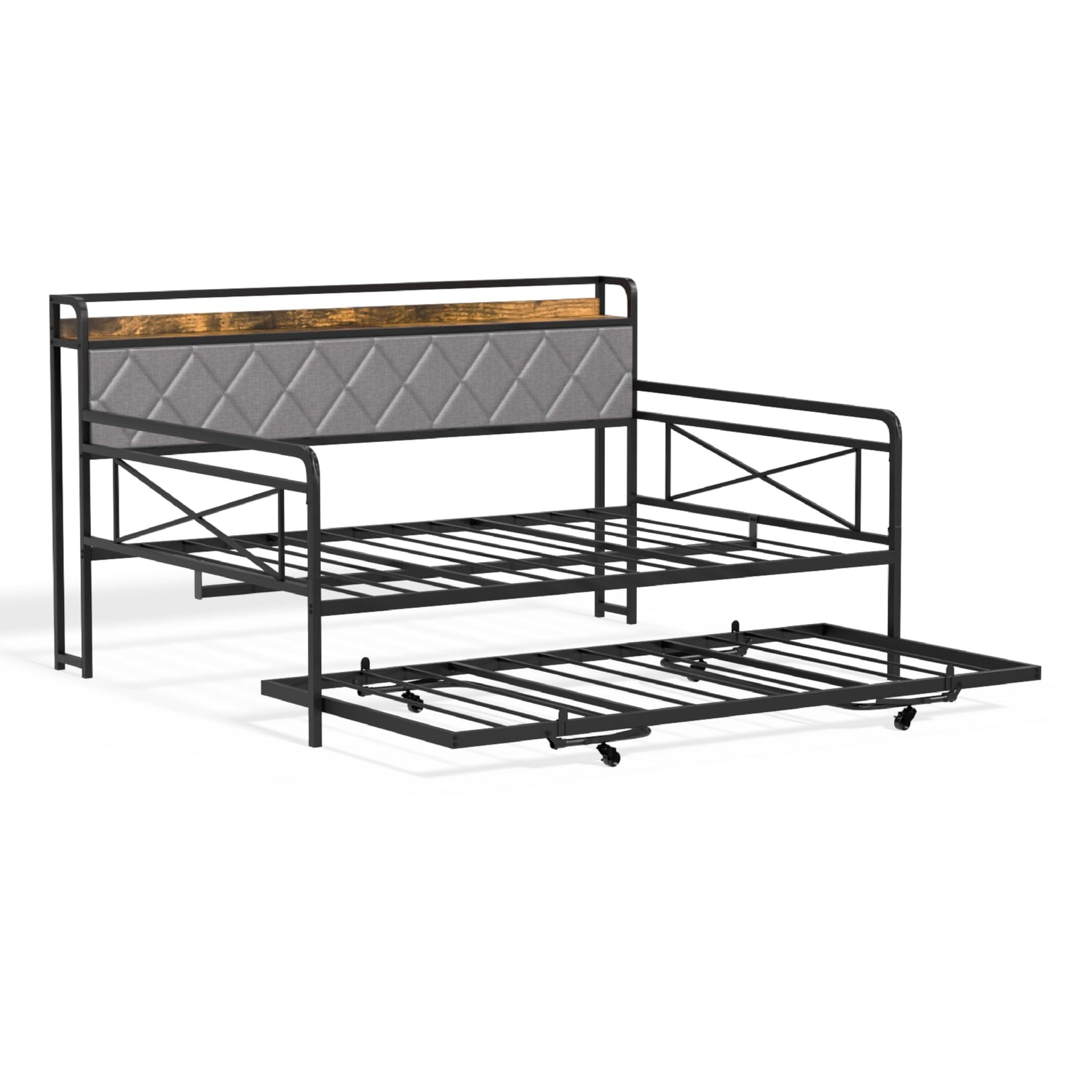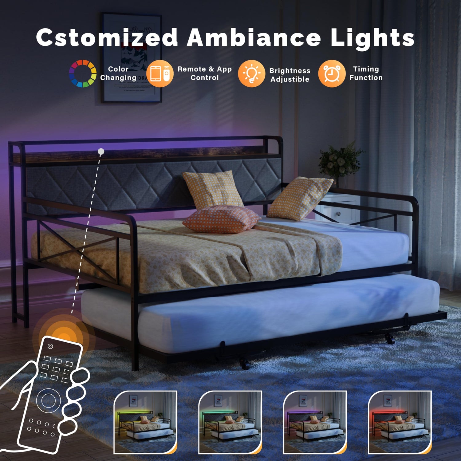 - 【 Convenient Charging , Smart Lighting】 This daybed frame has a integrated power station with 2 USB ports + 2 outlets for convenient device charging. Features customizable RGB LED light strips (6000 colors & dynamic modes via app/remote control), creating ambient lighting for reading, parties, or soothing nightlights.