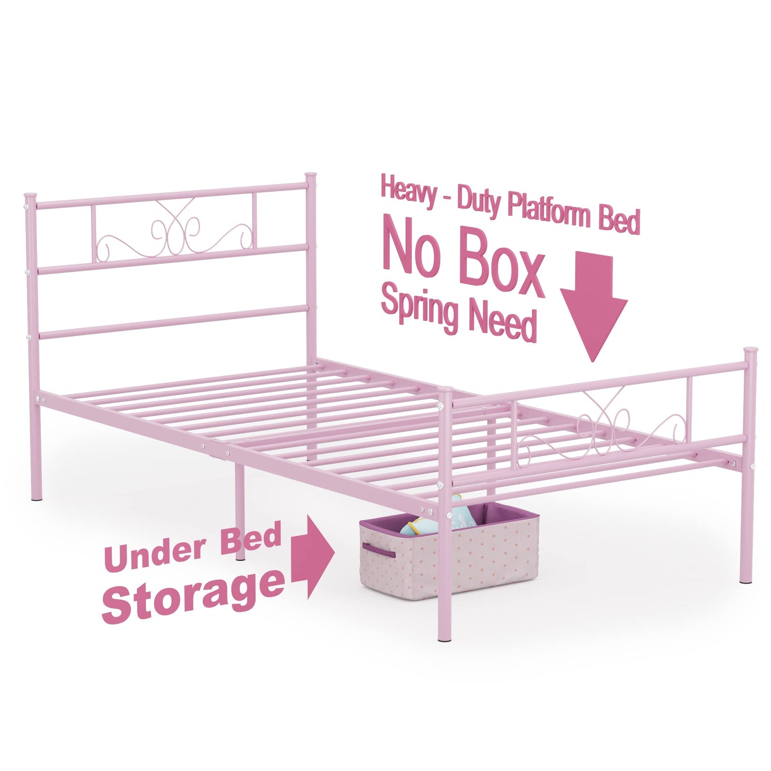Weehom Platform Steel Bed Frame with 6 Legs Mattress Foundation Heavy Duty Bed Steel Slat Support Easy Assemble Kids Adults(Twin Size),Pink