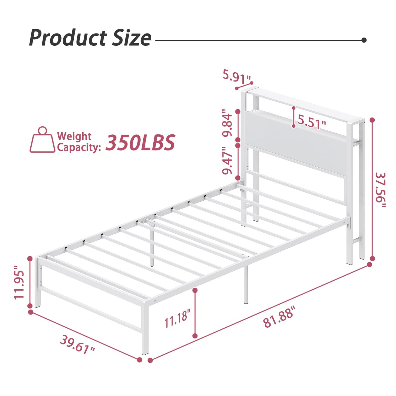- 【Twin Size Bed Frame】Dimension: 81.88" x 39.61" x 37.56" (L*W*H) , no mattress comes. Maximum support 350 lbs. Storage Shelf Width: 5.91”. A stylish adding to any room. Ideal for kids,teens and adults