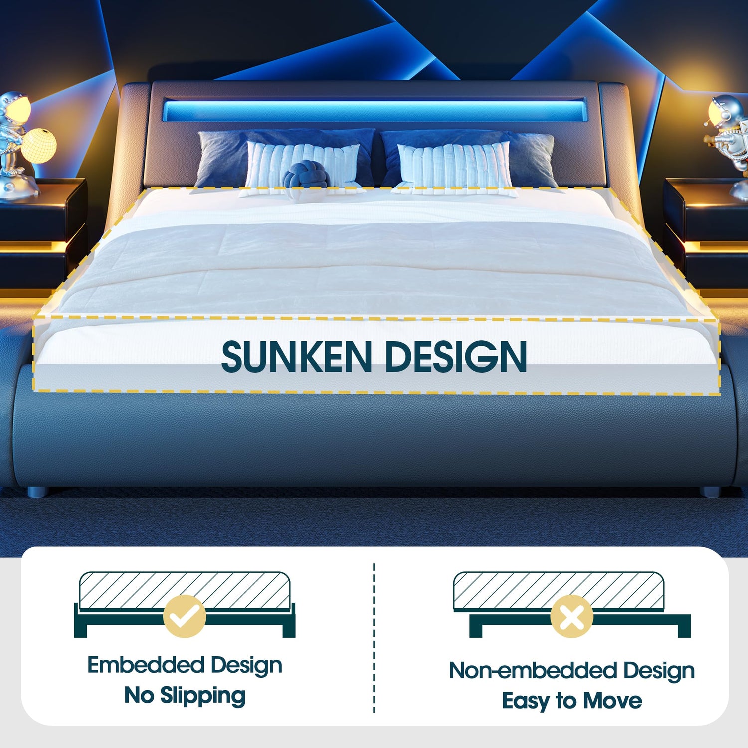 The WEEWAY bed frame's sleek sleigh design adds a sophisticated touch to your decor, while the luxurious PU faux leather upholstery creates a sumptuous feel. Its low profile design not only enhances accessibility but also prevents pets from jumping in and out of bed. The unique sunken structure ensures your mattress stays securely in place, making it an ideal foundation for 8-10 inch mattresses, without the need for a box spring.