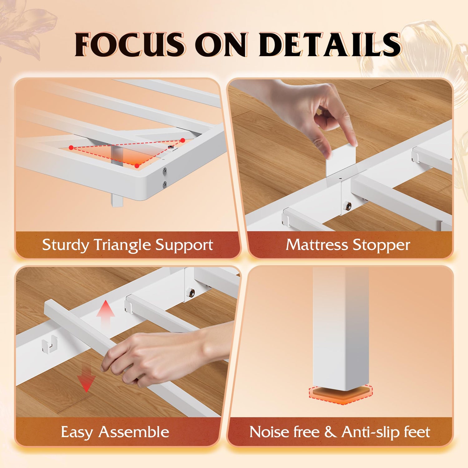 • 【📮Easy Assembly & Excellent Service】The design of our metal platform bed eliminates the need for a box spring, provide detailed assembly guide, screw parts clearly marked, reserved holes and tools, quick assembly within an hour. Professional after-sales team is ready to use more worry-free!