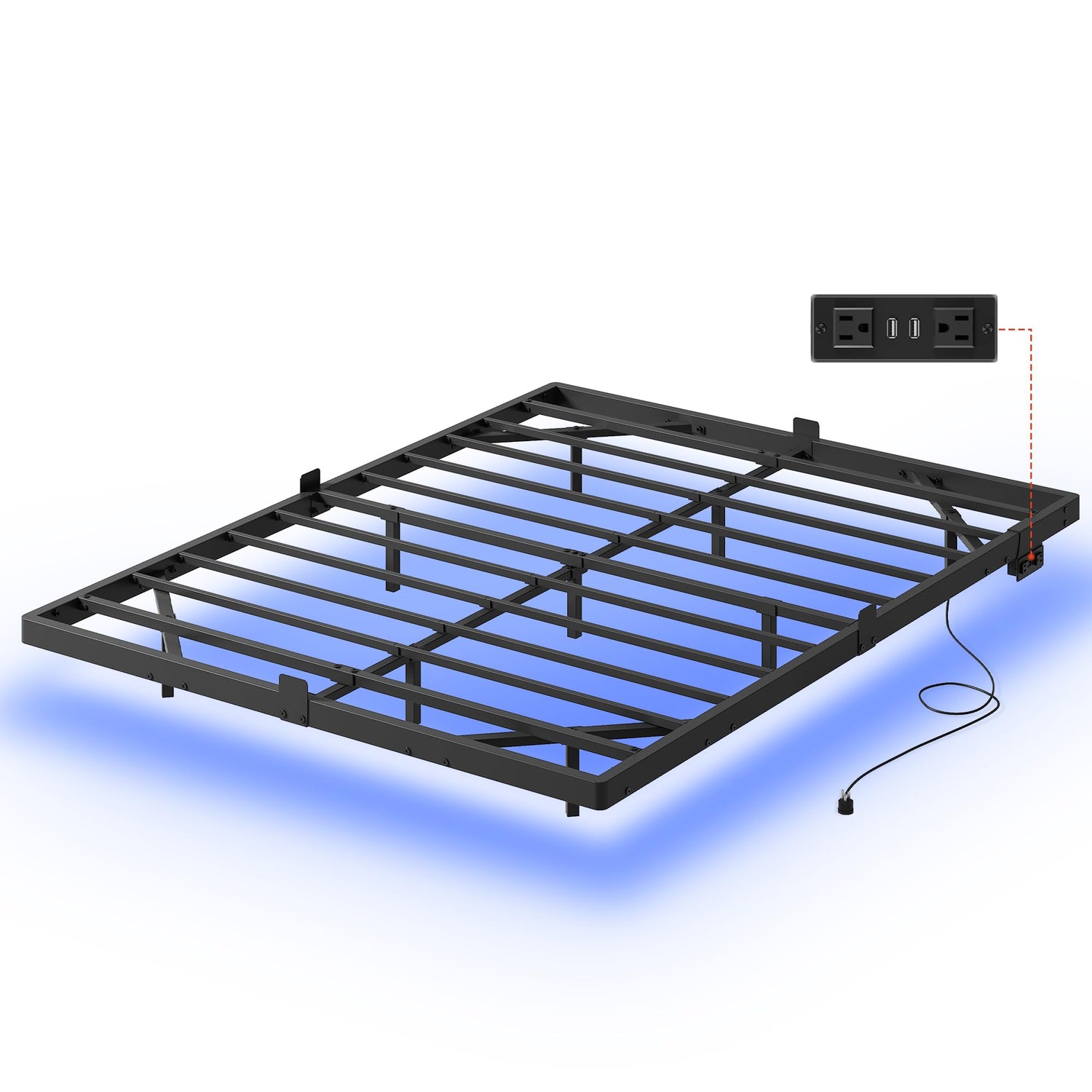 WLIVE Floating Queen Bed Frame, LED Bed Frame with Charging Station, Metal Platform Beds Queen Size with Heavy Duty Steel Slats, No Box Spring Needed, Easy Assembly, No Noise, Black