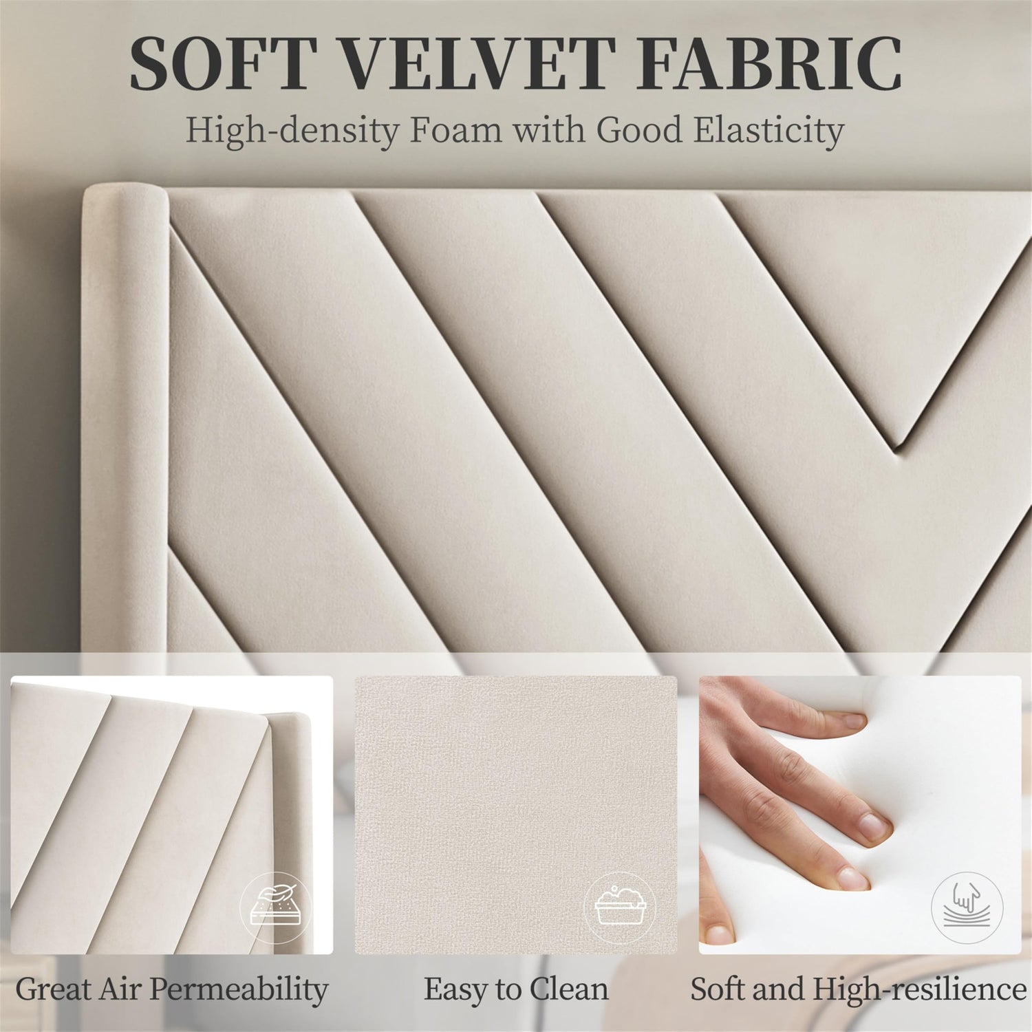 • Wing Side Design: Designed with a wing side on the wide upholstered headboard and skin-friendly velvet fabric, the full bed frame can be a must-have in any restful retreat. (No Box Spring Needed)